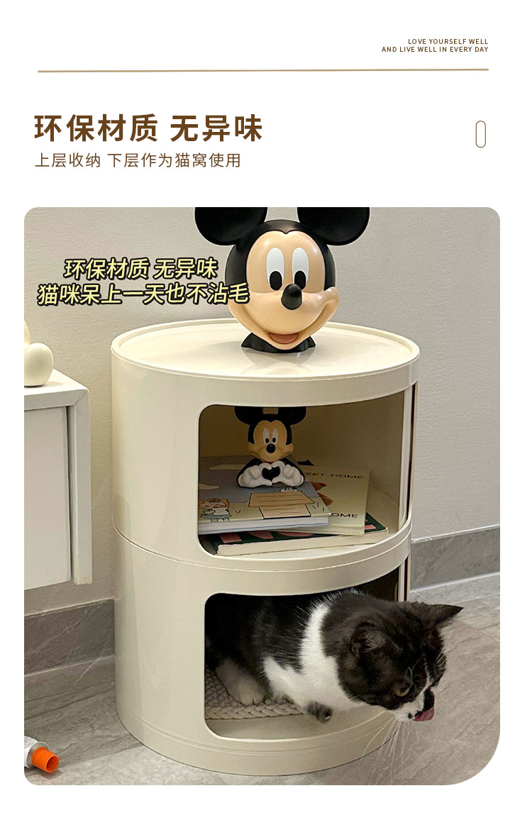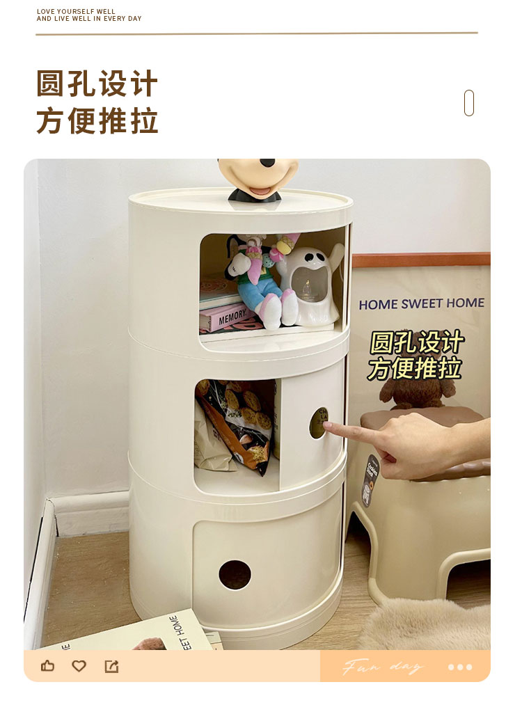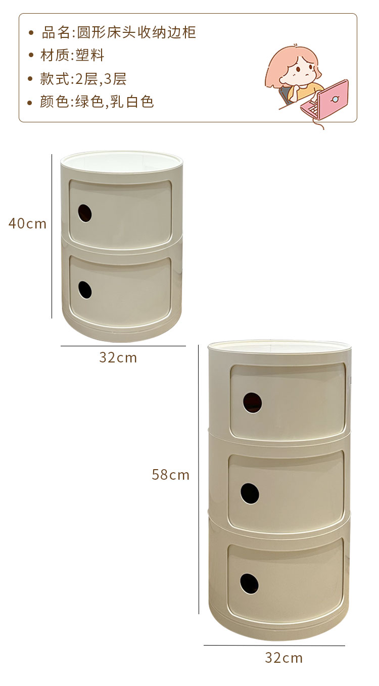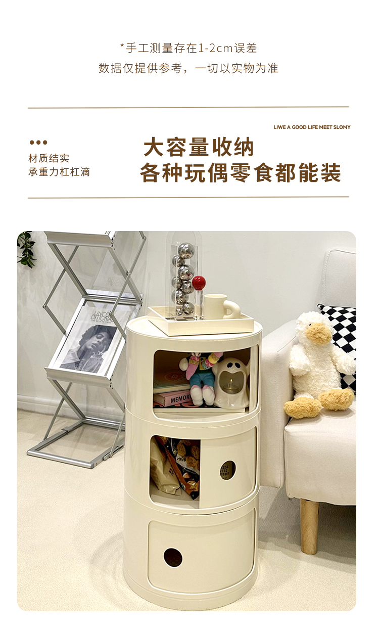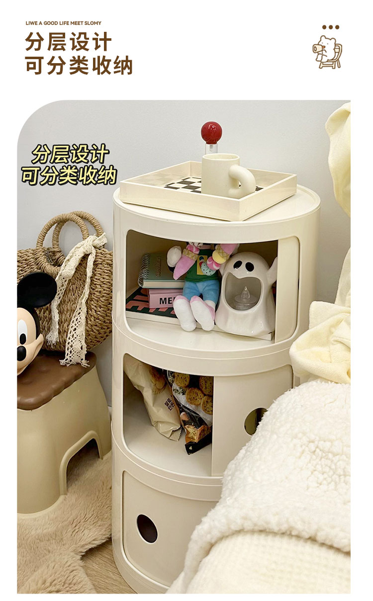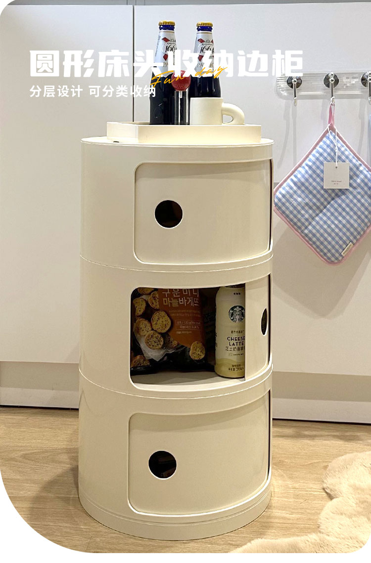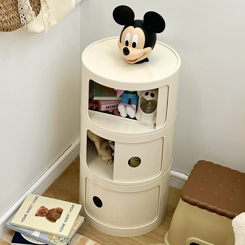 9C 크림 스타일 창조적 인 둥근 침대 테이블 작은 어린이 간단한 현대 사이드 테이블 침실 보관 랙 미니 좁은 캐비닛