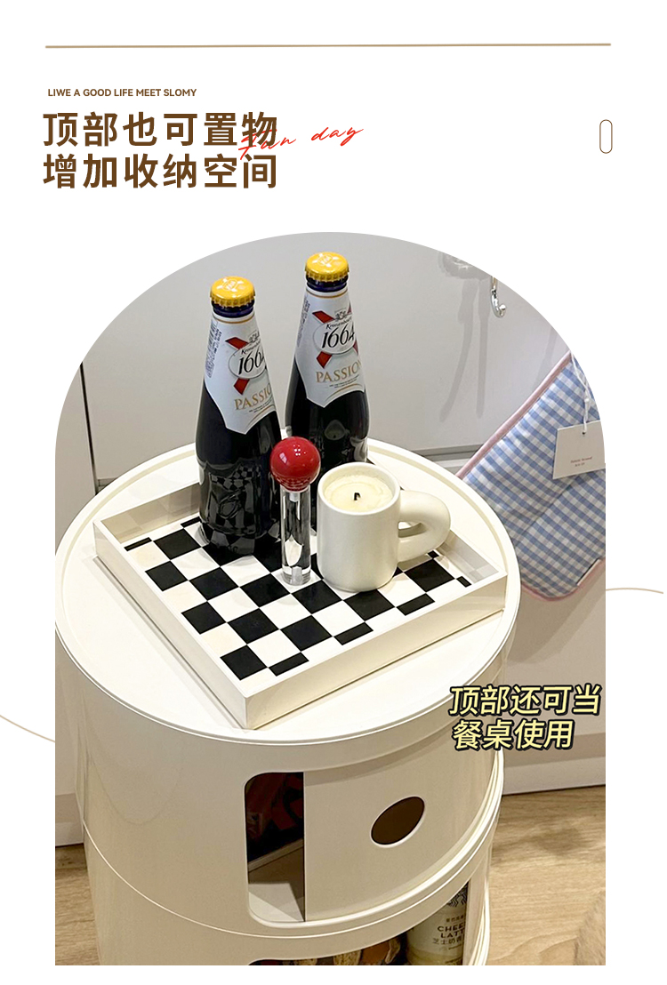 9C 크림 스타일 창조적 인 둥근 침대 테이블 작은 어린이 간단한 현대 사이드 테이블 침실 보관 랙 미니 좁은 캐비닛스토어 가기