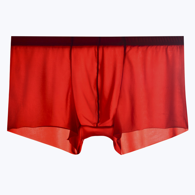 남성 속옷 아이스 실크 복서 속옷 울트라 얇은 통기성 비 마킹 반투명 단색 여름 섹시한 미드 웨이스트 복서 반바지