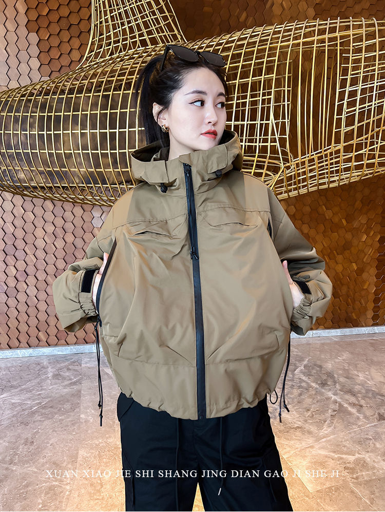 200kg 플러스 사이즈 여성 통통녀 패션 느슨한 캐주얼 재킷 코트 봄과 가을 새로운 후드 충전 카디건