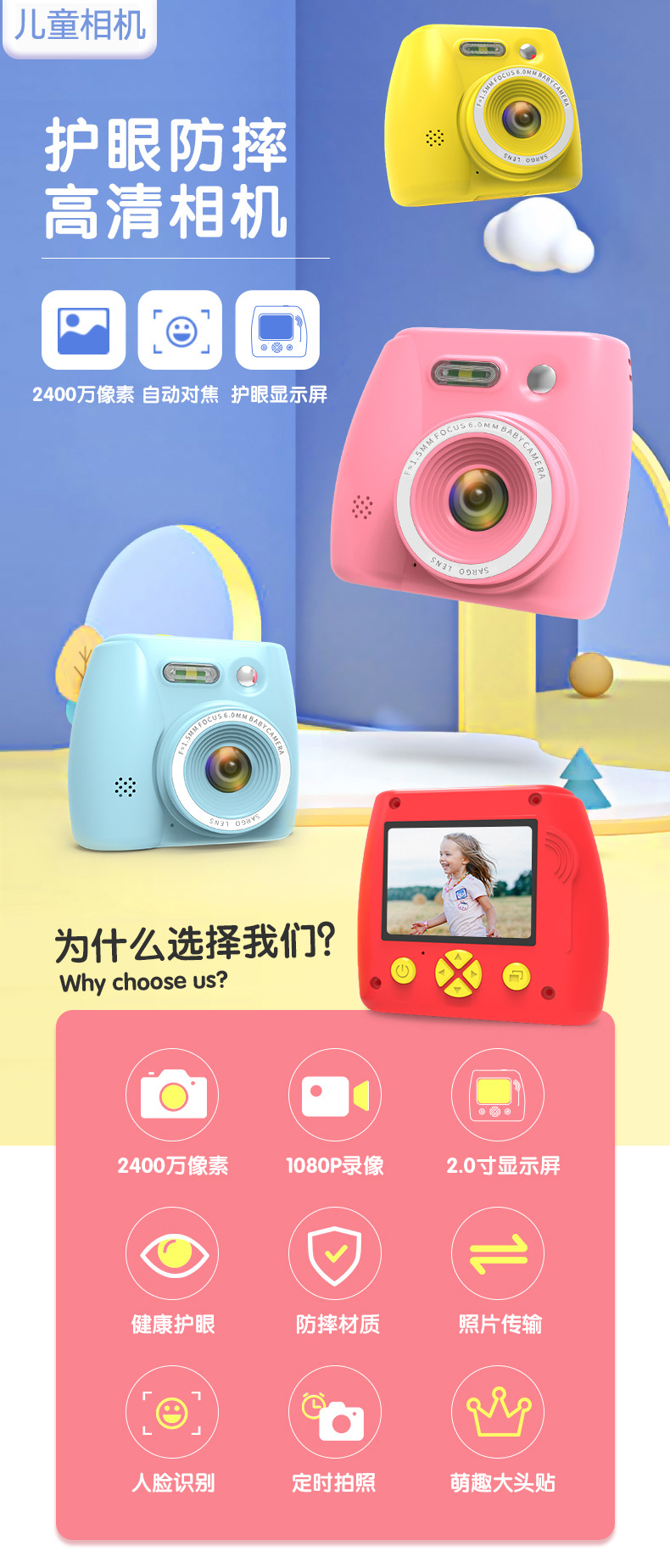 어린이 카메라 디지털 미니 카메라 소년과 소녀 생일 새로운 장난감 선물 사진을 찍을 수 교육 게임스토어 가기