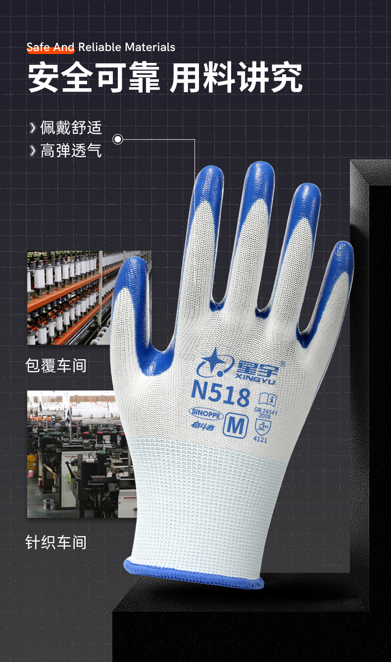 Xingyu 노동 보호 장갑 N518 여성용 니트릴 담그기 내마모성 내유성 미끄럼 방지 통기성 사이트 유지 보수 보호 장갑
