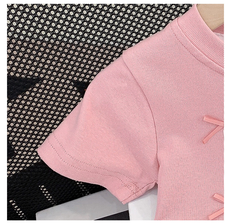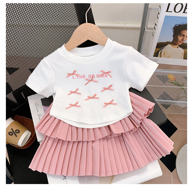 여름 옷 2025 여자 보우 반팔 티셔츠 + 주름 케이크 스커트 세트 편지 탑 스커트 투피스 세트