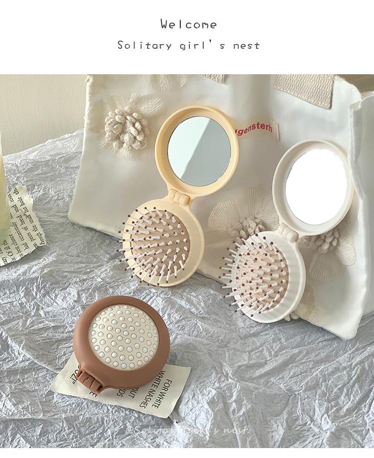 귀여운 작은 빗 휴대용 미니 에어 쿠션 빗 어린이와 소녀 접이식 에어 캡슐 빗 마사지 빗 미러 통합