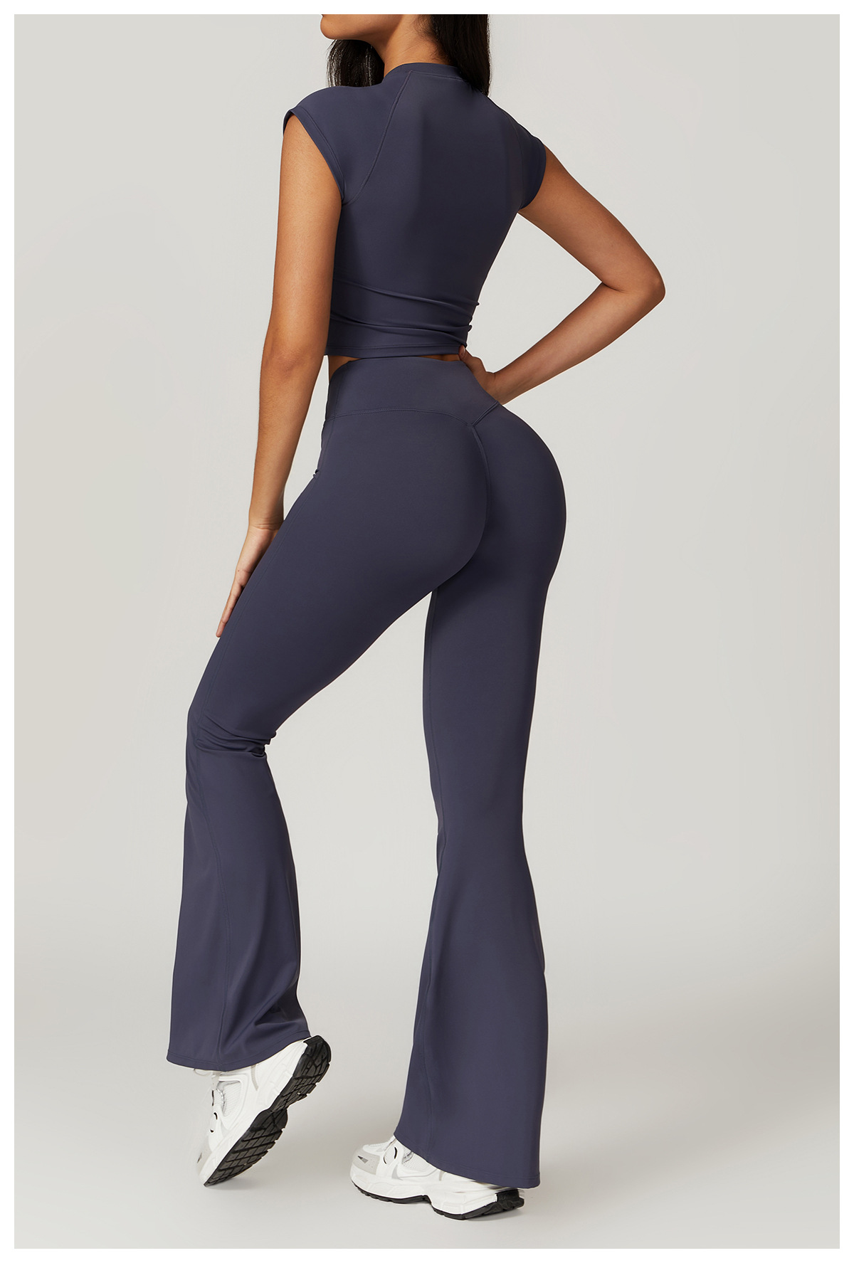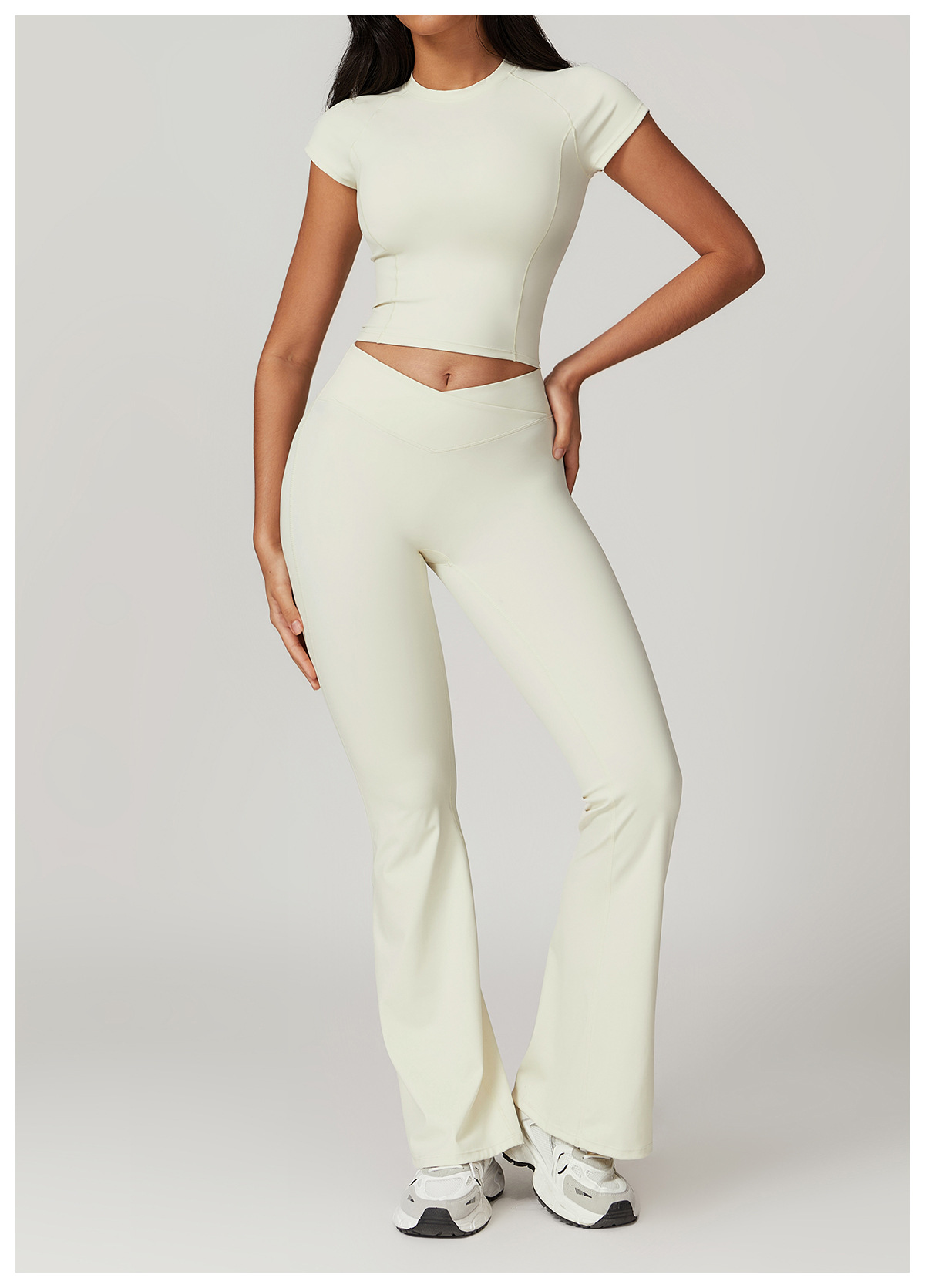 환경 친화적 인 재생 고강도 작은 비행 소매 달리기 피트니스 반팔 스포츠 티셔츠 여성용 꽉 끼는 빠른 건조 요가 의류 8799