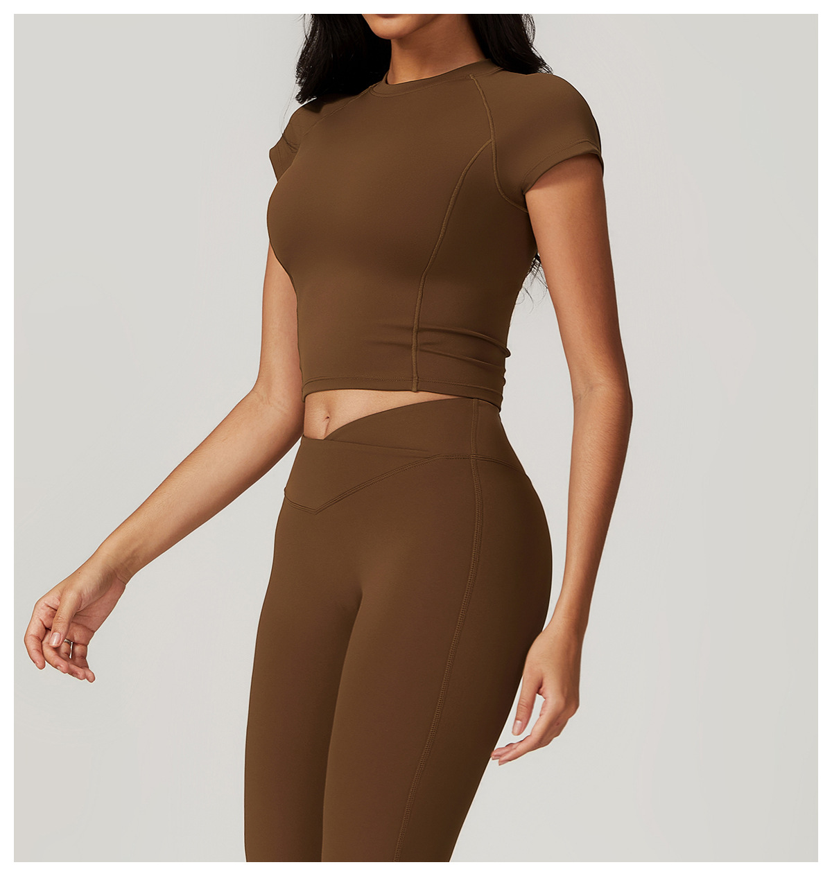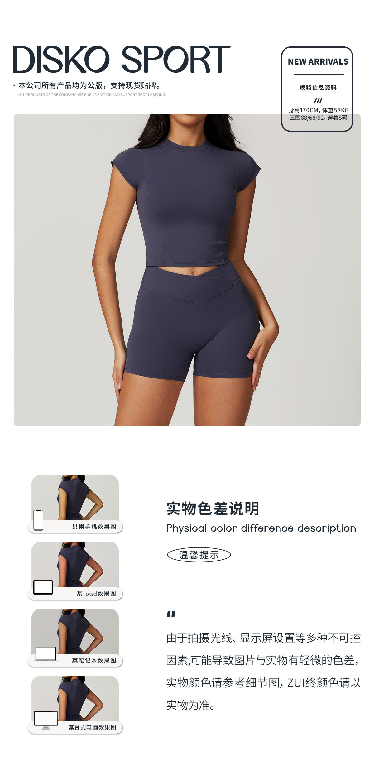 환경 친화적 인 재생 고강도 작은 비행 소매 달리기 피트니스 반팔 스포츠 티셔츠 여성용 꽉 끼는 빠른 건조 요가 의류 8799스토어 가기
