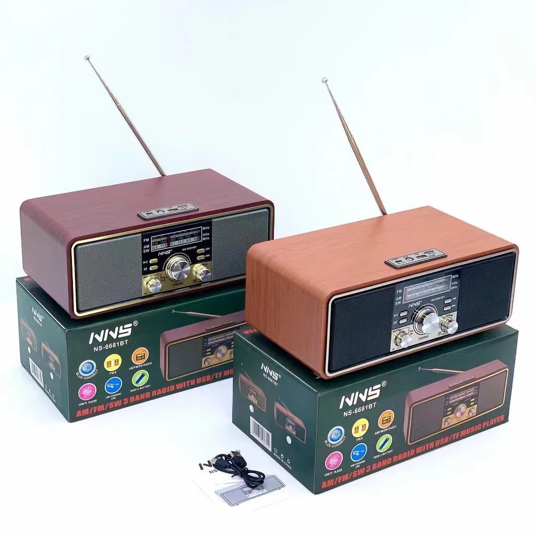 NS-6681BT 나무 레트로 블루투스 스피커 멀티 밴드 라디오 무거운 서브 우퍼 카드 오디오