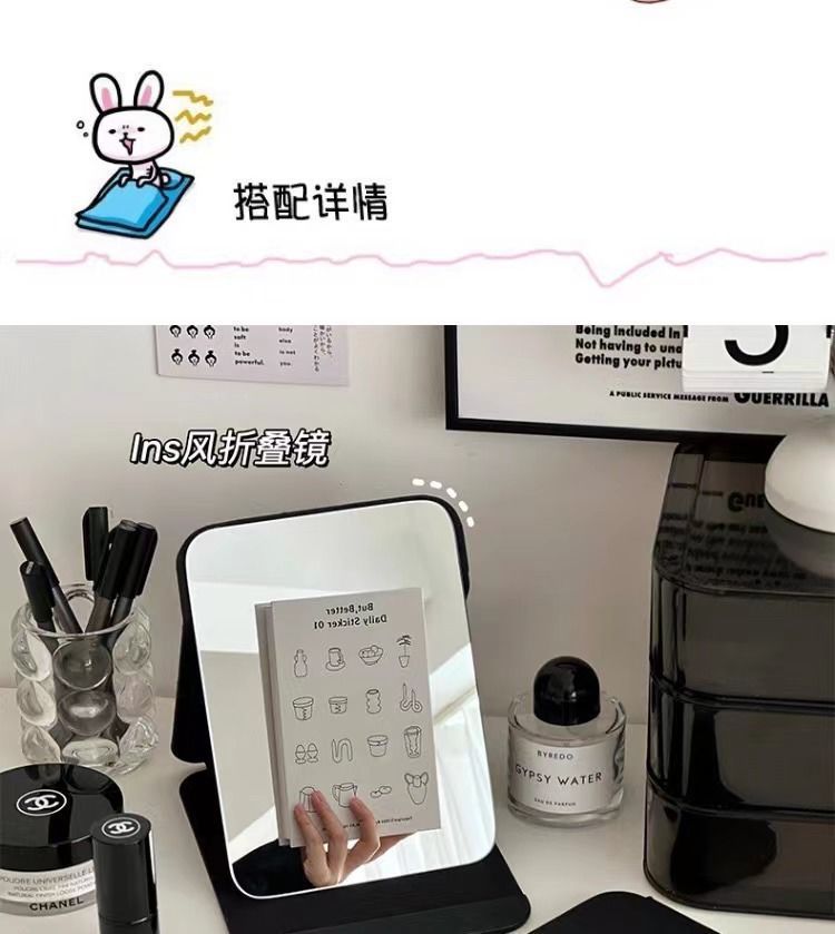 Ins 스타일 메이크업 거울 접히는 거울 전체 화면 드레싱 거울 학생 기숙사 데스크탑 여행 휴대용스토어 가기