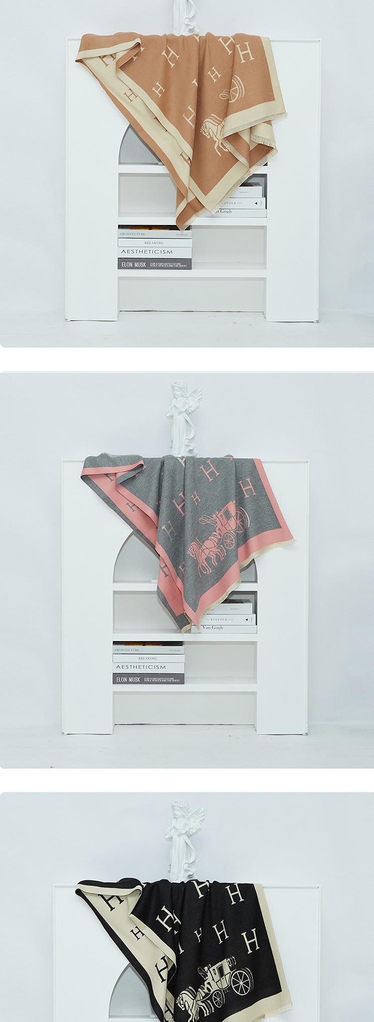 H 캐리지 에어컨 방 목도리 이중 사용 여성용 가을 및 겨울 두꺼운 따뜻한 양면 망토 올매치 소프트 왁스 롱 스카프