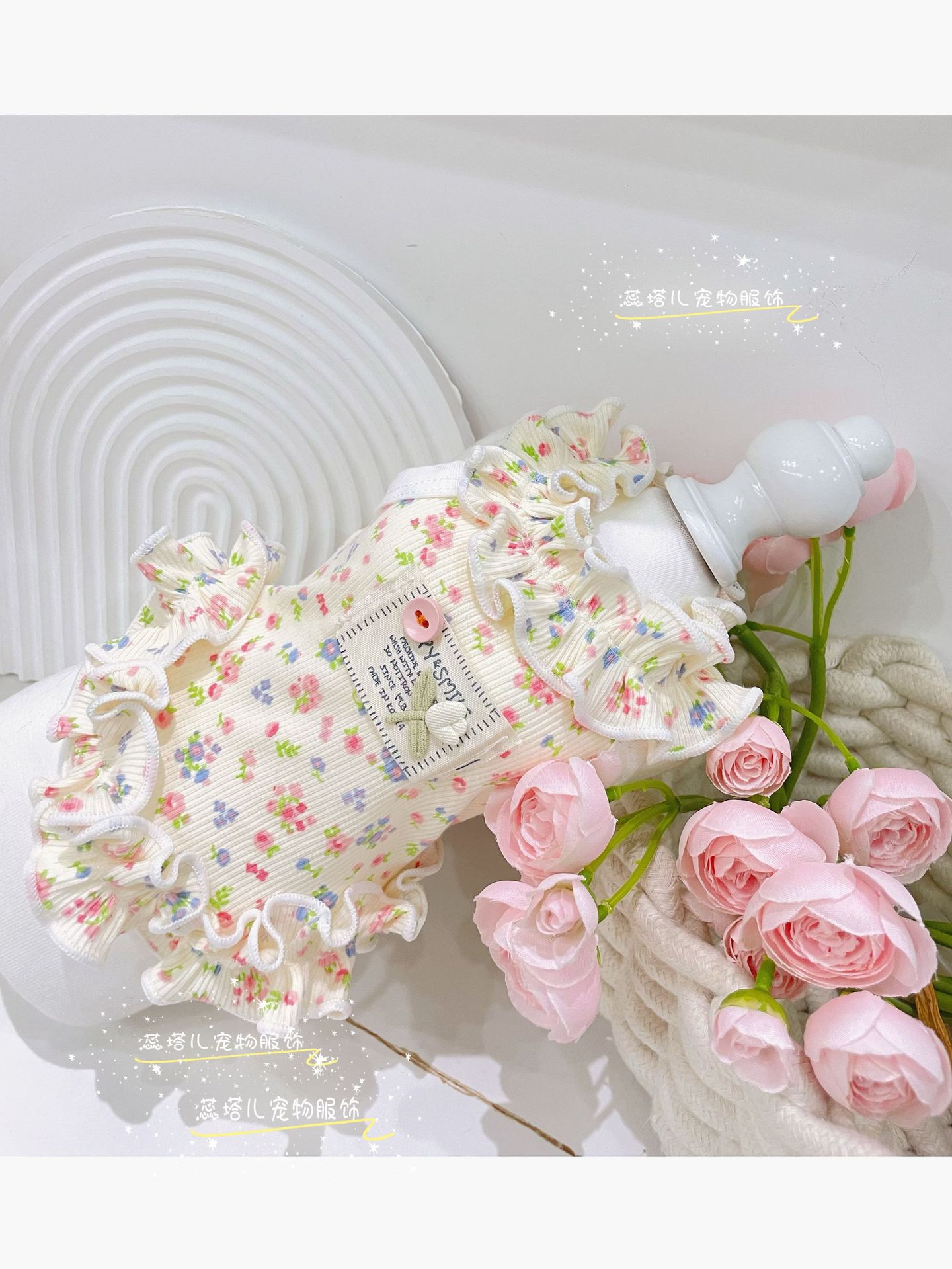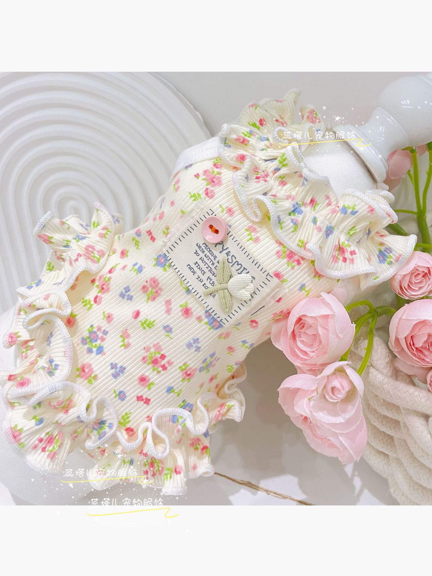 테디 꽃무늬 스커트 애완동물 의류 몰타 요크셔 비숑 강아지 순면 곰팡이 드레스스토어 가기