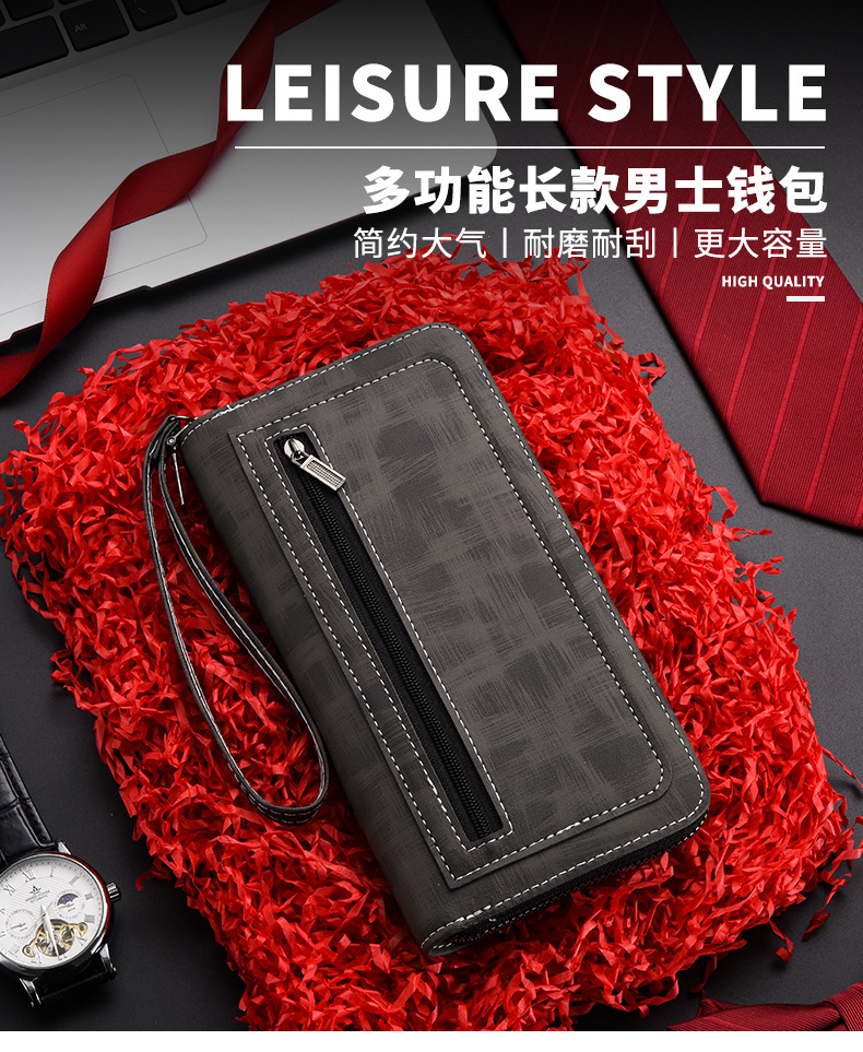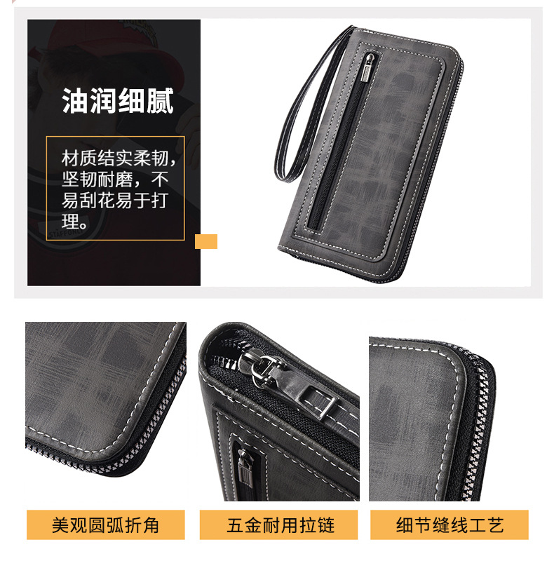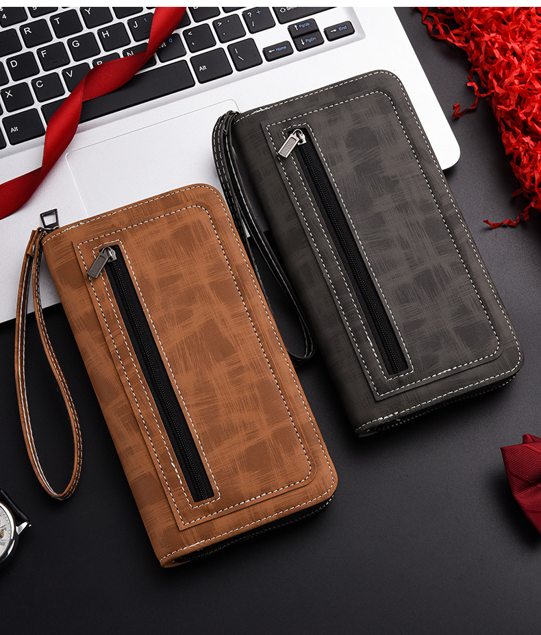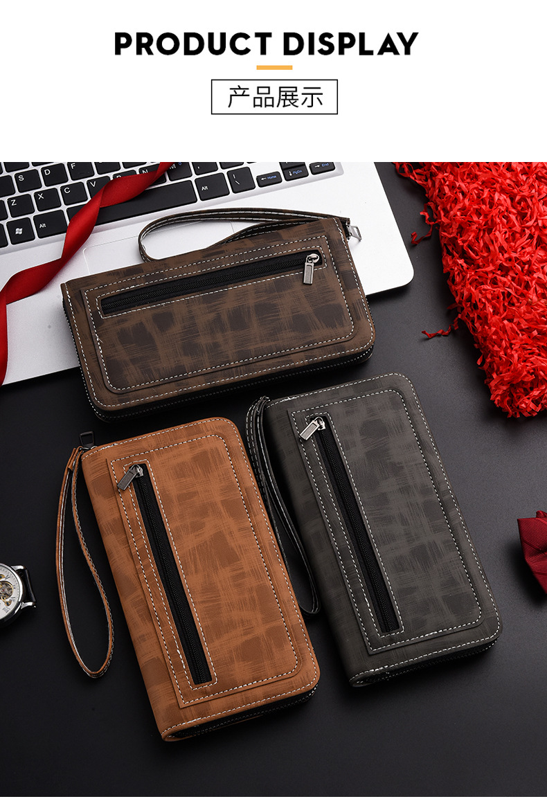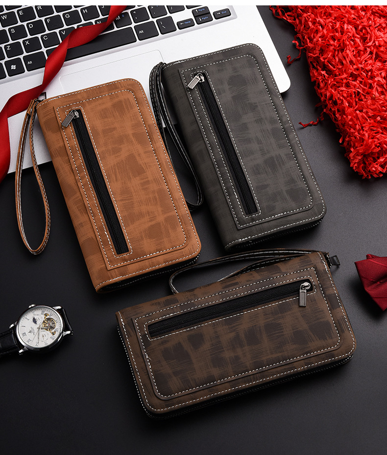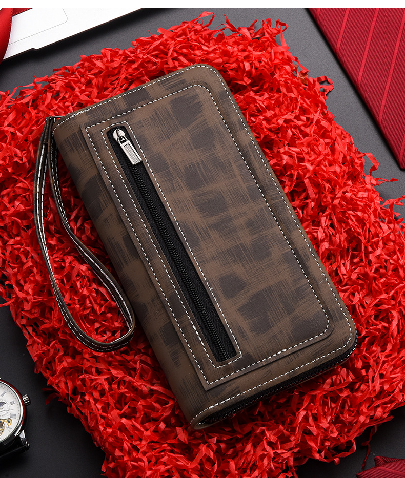 남성 지갑 긴 지퍼 동전 클립 대용량 클러치 핸드백 다기능 휴대 전화 가방 지갑 간단한 남성 핸드백