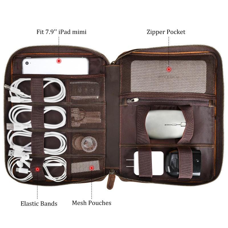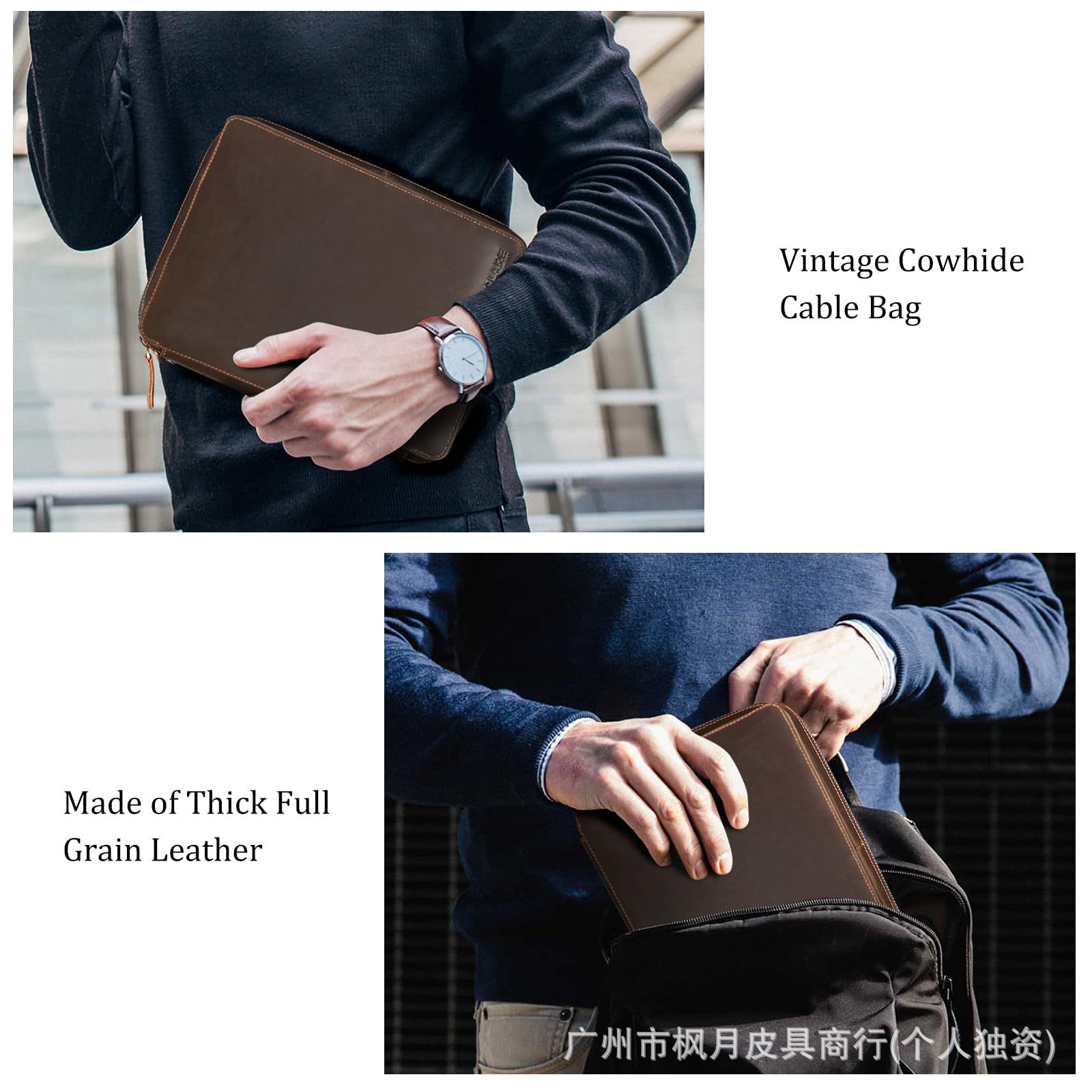 국경 간 미친 말 포켓 디지털 저장 가방 남녀 여행 가죽 방수 데이터 케이블 전자 저장 가방스토어 가기