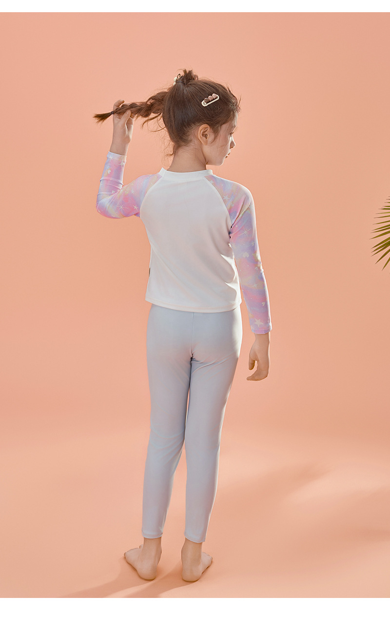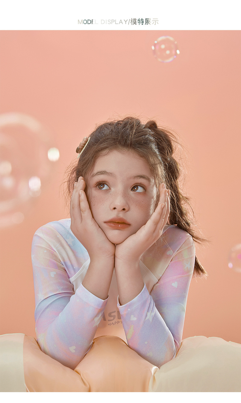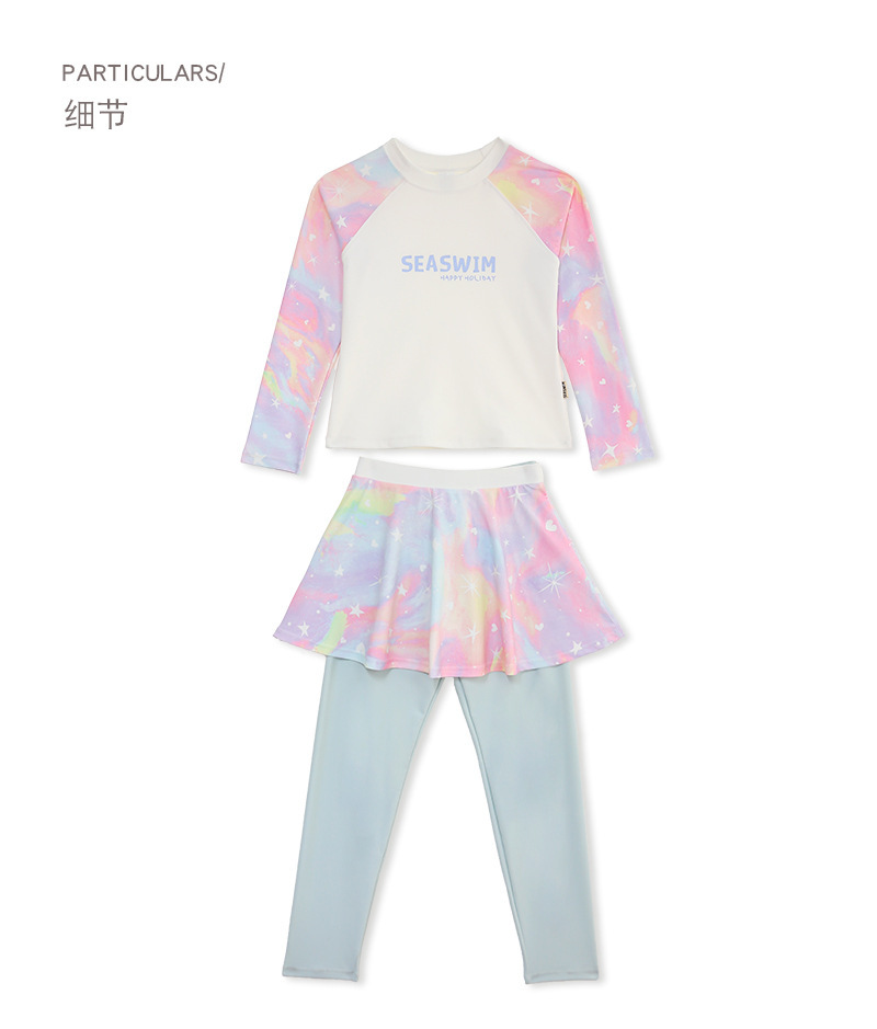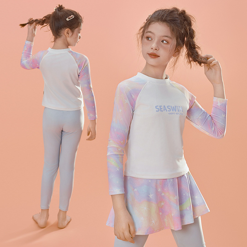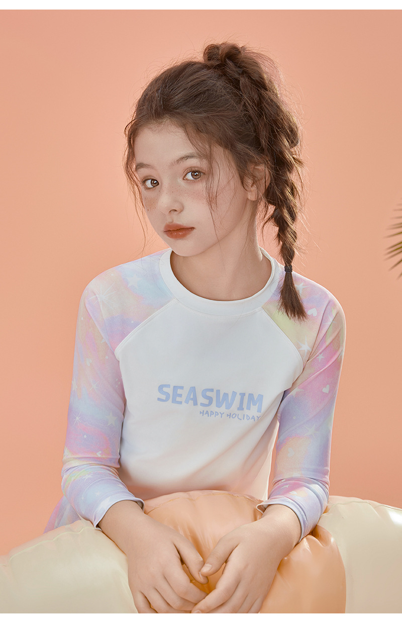 2024 여름 새로운 여자 수영복 레저 스포츠 긴 소매 분할 가짜 두 큰 어린이 자외선 차단제 빠른 건조 도매