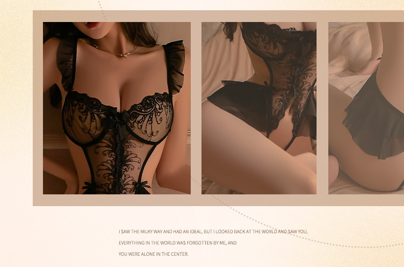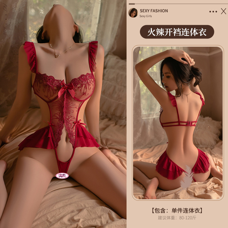 남자 연기 섹시한 속옷 섹시한 깊은 U-스트랩 관점 레이스 할로우 아웃 원피스 점프 수트 유니폼 9094스토어 가기