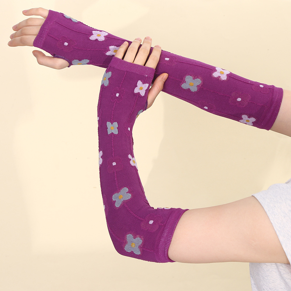 봄과 여름 새로운 작은 신선한 소매 폴리 에스테르 밝은 색상 여성의 작은 꽃 긴 장갑 패션 캐주얼 여성 소매