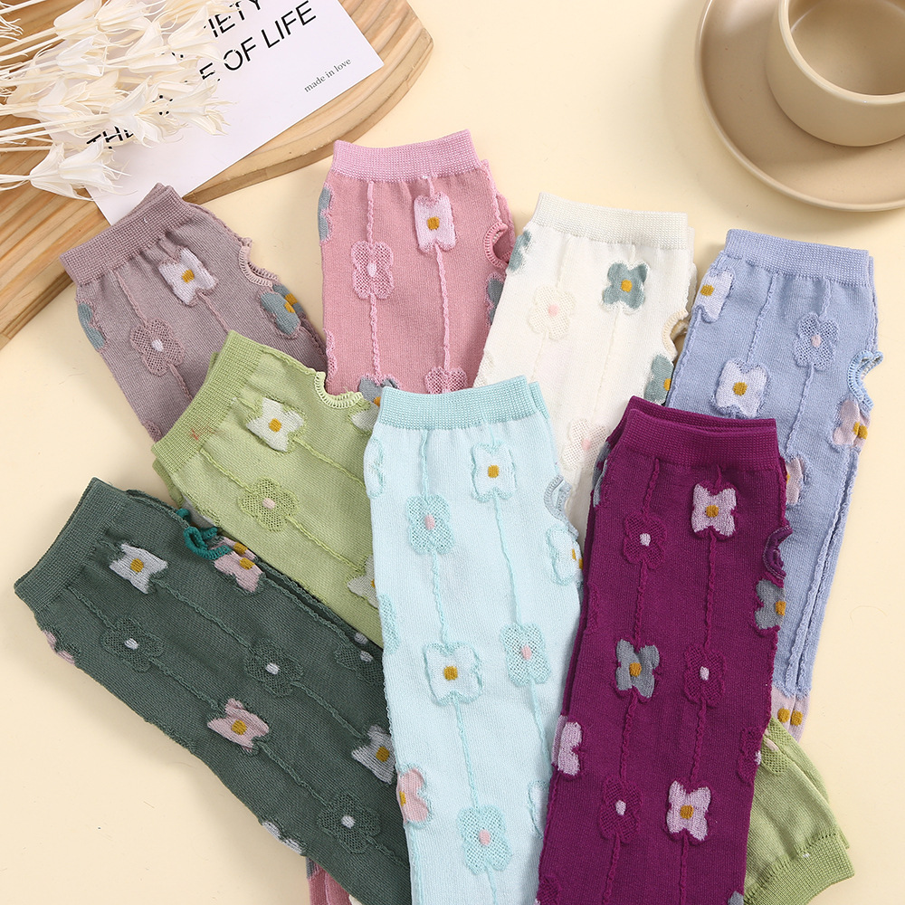 봄과 여름 새로운 작은 신선한 소매 폴리 에스테르 밝은 색상 여성의 작은 꽃 긴 장갑 패션 캐주얼 여성 소매스토어 가기