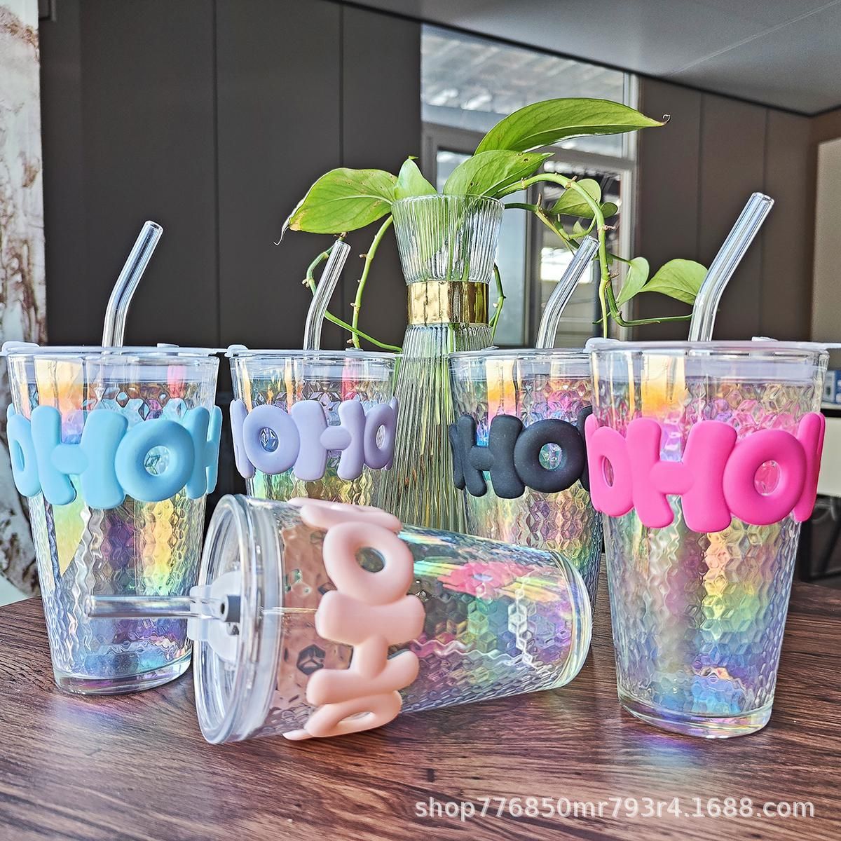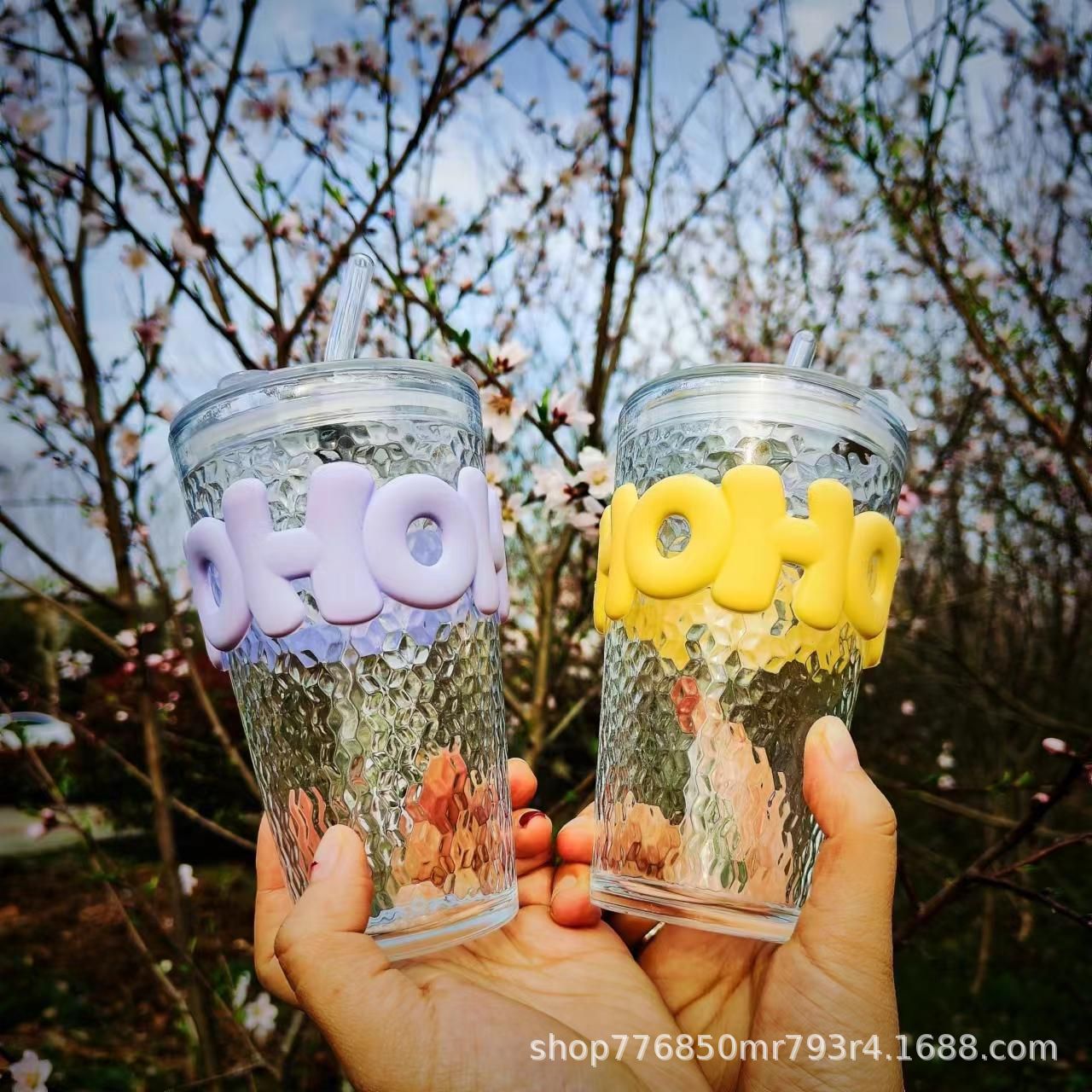 인터넷 연예인 대나무 컵 Ins 스타일 밀짚 커피 컵 가게 축하 배수 광고 선물 유리 물 컵 인쇄스토어 가기