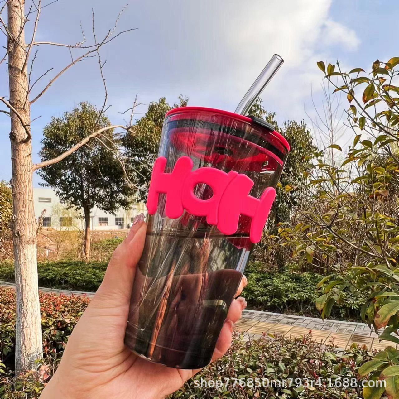 인터넷 연예인 대나무 컵 Ins 스타일 밀짚 커피 컵 가게 축하 배수 광고 선물 유리 물 컵 인쇄