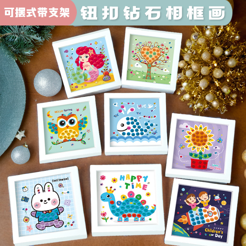 어린이 DIY 버튼 그림 프레임 그림 수제 소재 가방 유치원 버튼 그림 어린이 날 작은 선물 장식품스토어 가기