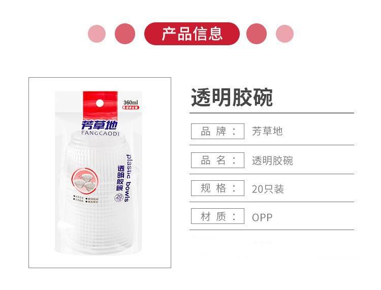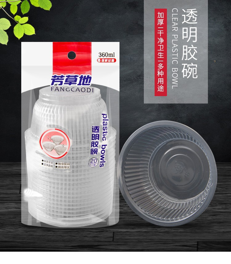 Fangcaodi 3G5640 일회용 플라스틱 그릇 가족 저녁 식사용 플라스틱 그릇 360ml 20개 투명 단일 패키지