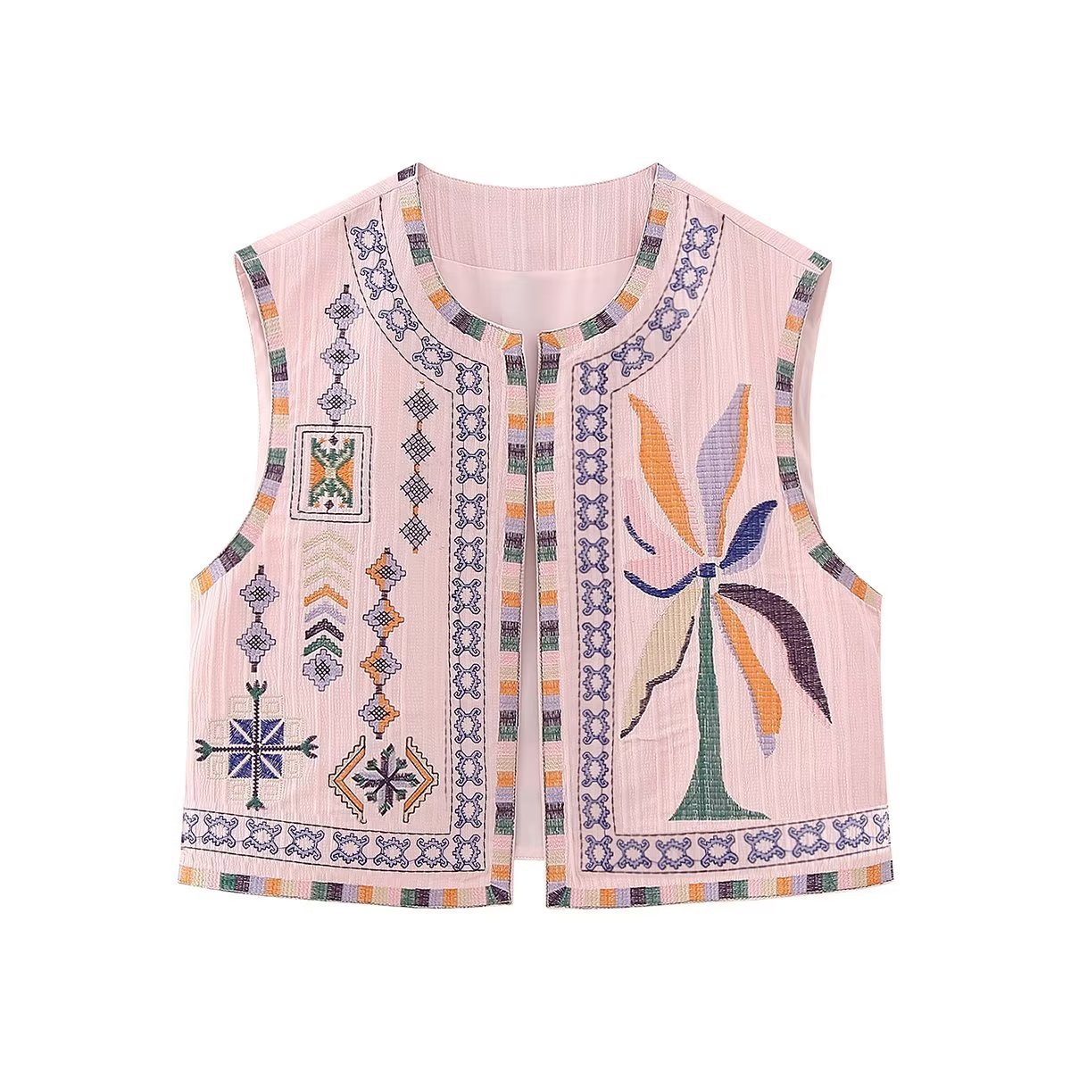 유럽과 미국 국경 여성 의류 2024 여름 새로운 중국 스타일 도시 편안한 레저 조끼 카디건 작은 조끼 도매스토어 가기