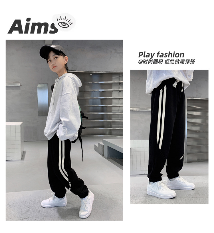 소년 바지 2024 봄 새로운 대형 어린이 느슨한 얇은 스포츠 바지 아이들의 스트레치 줄무늬 운동복 봄 가을스토어 가기