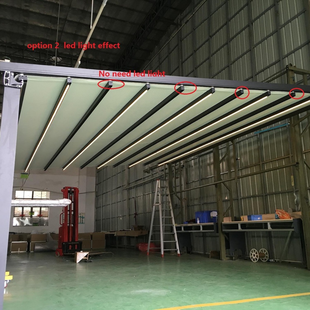 야외 pergola 차양 알루미늄 프레임 소재 및 PVC 항해 재료 개폐식 지붕스토어 가기