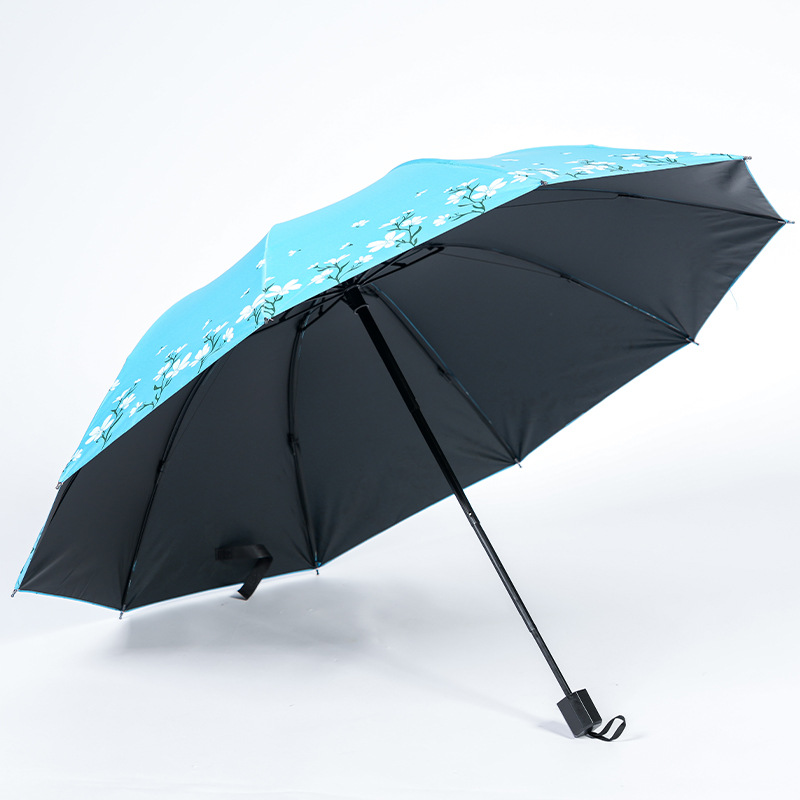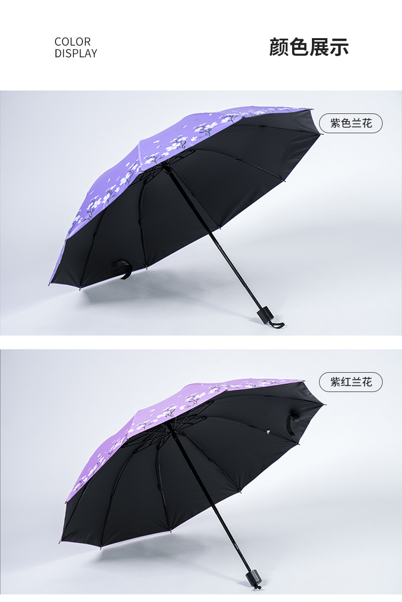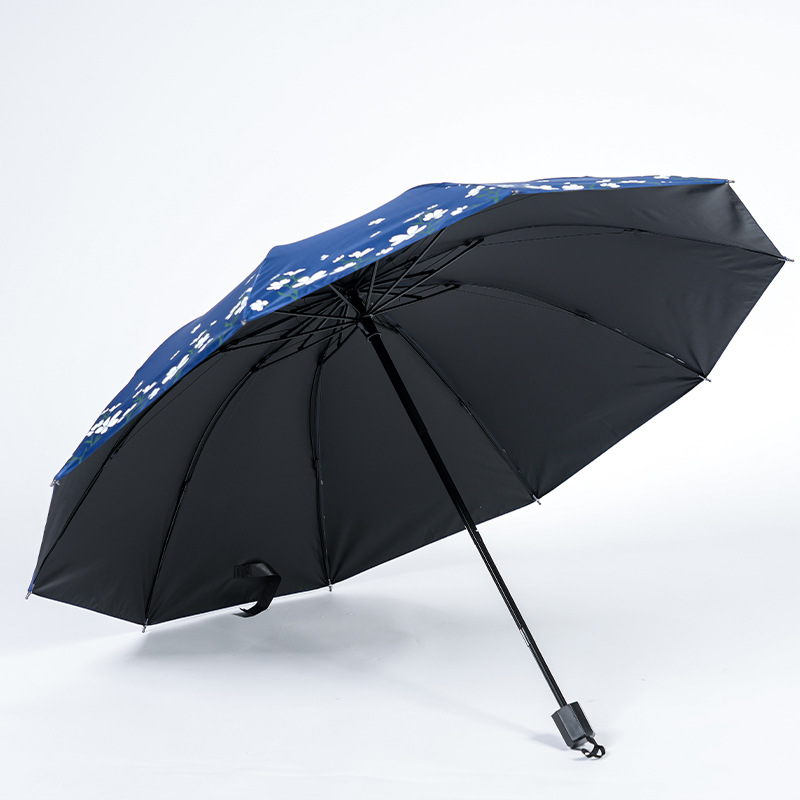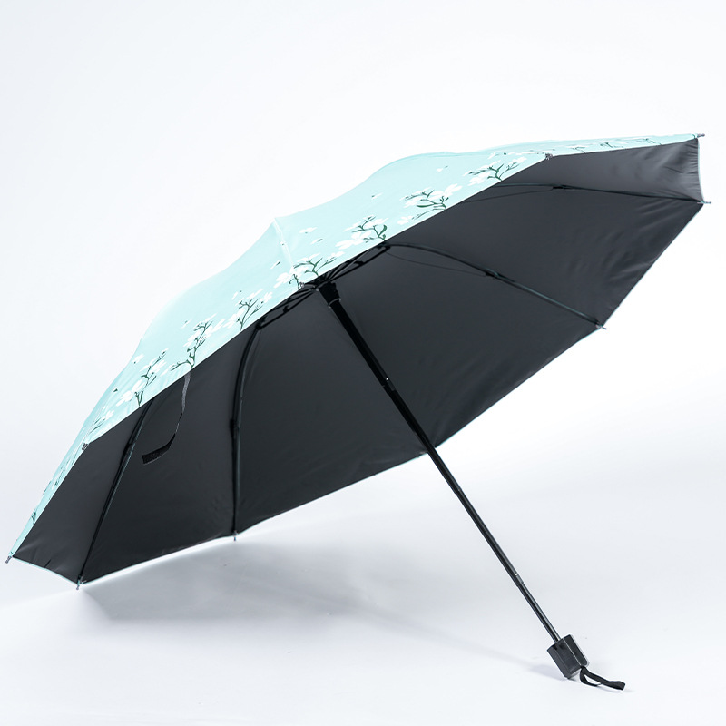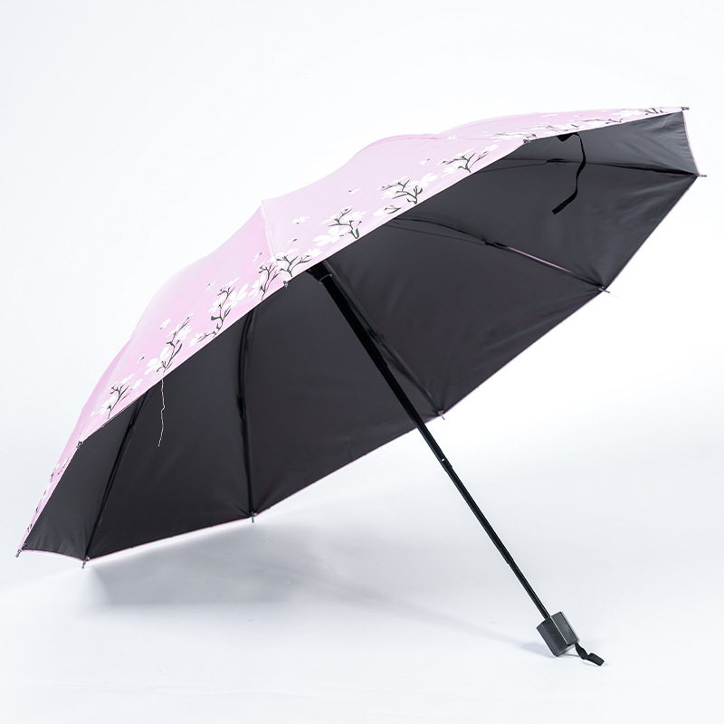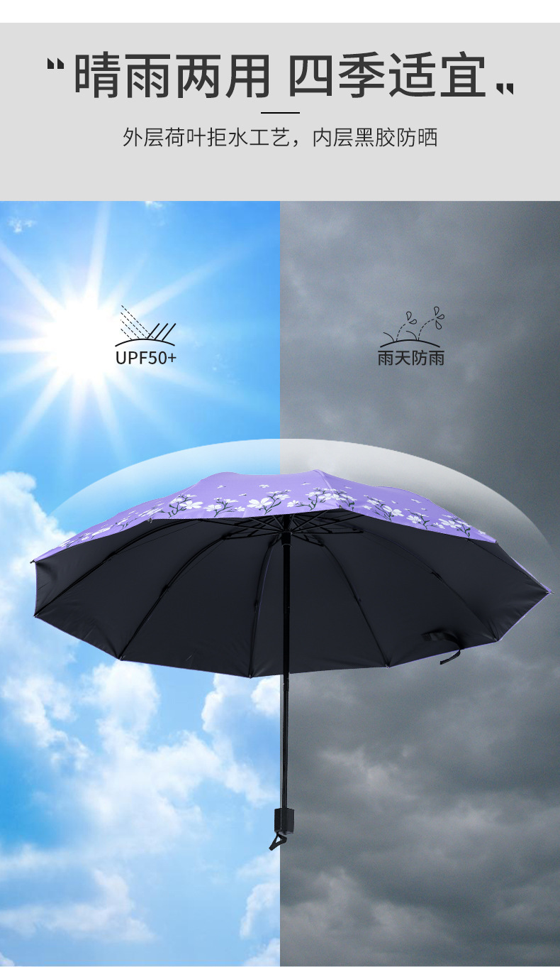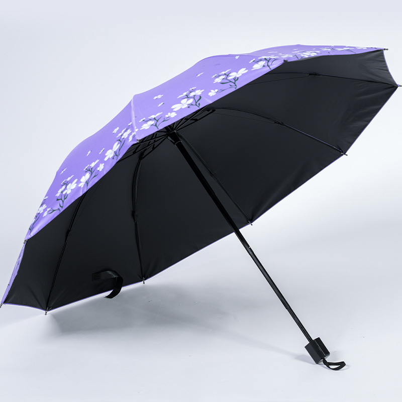 2024 남성과 여성을위한 맑고 비오는 이중 목적 검은 고무 우산 태양 우산 태양 우산 신선한 꽃 햇빛 우산
