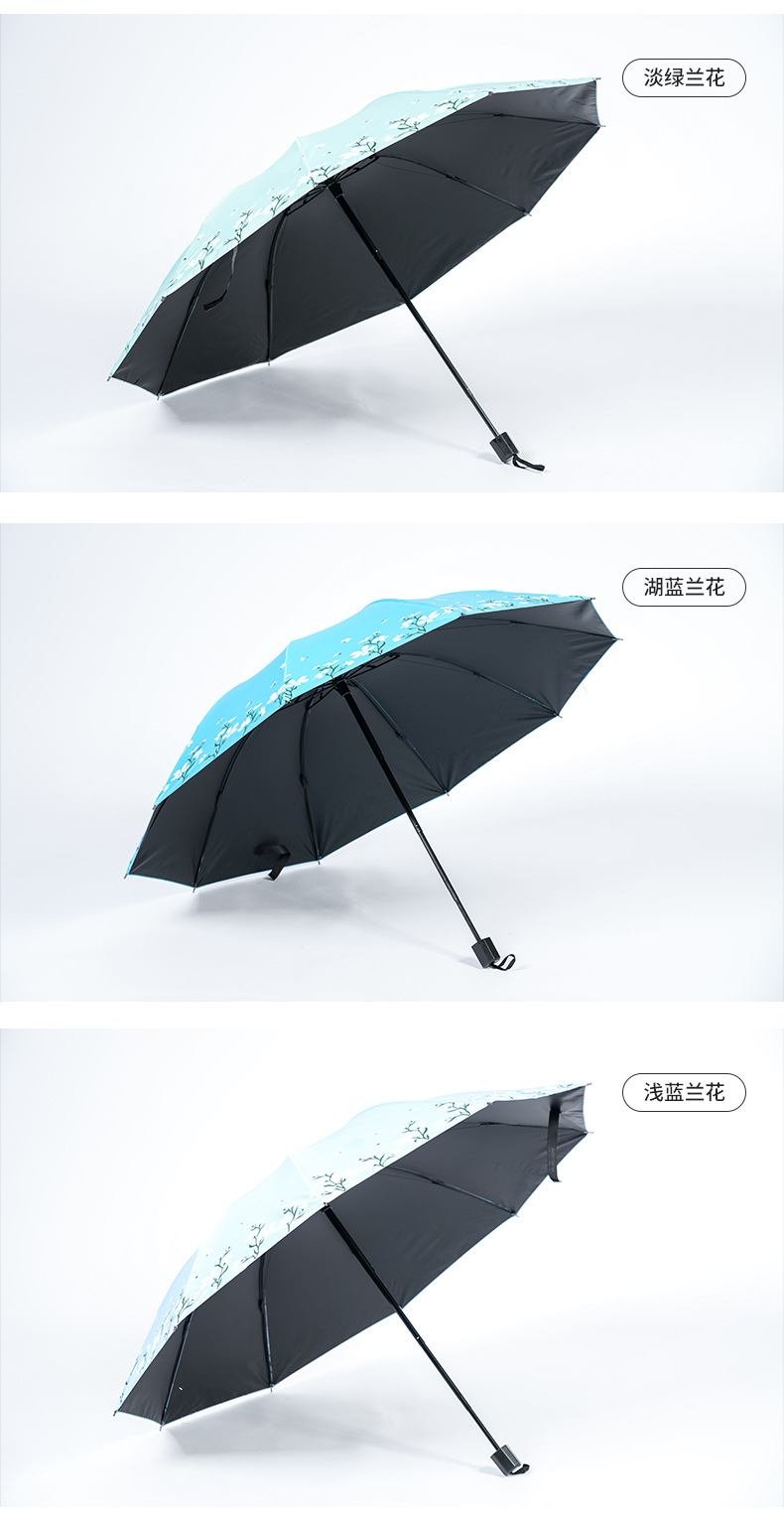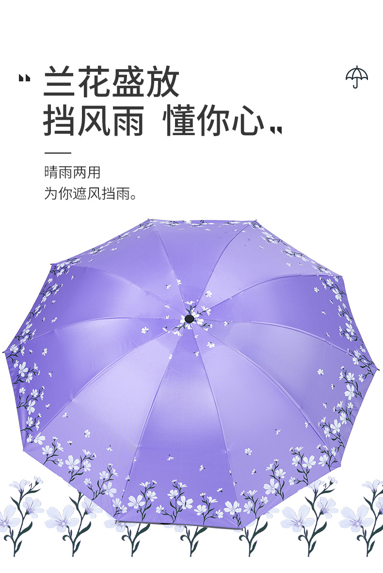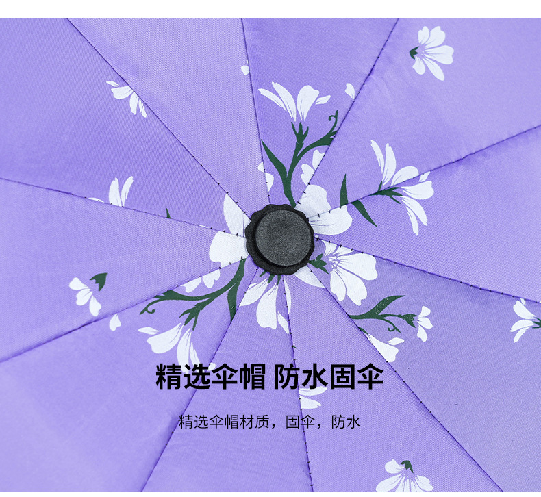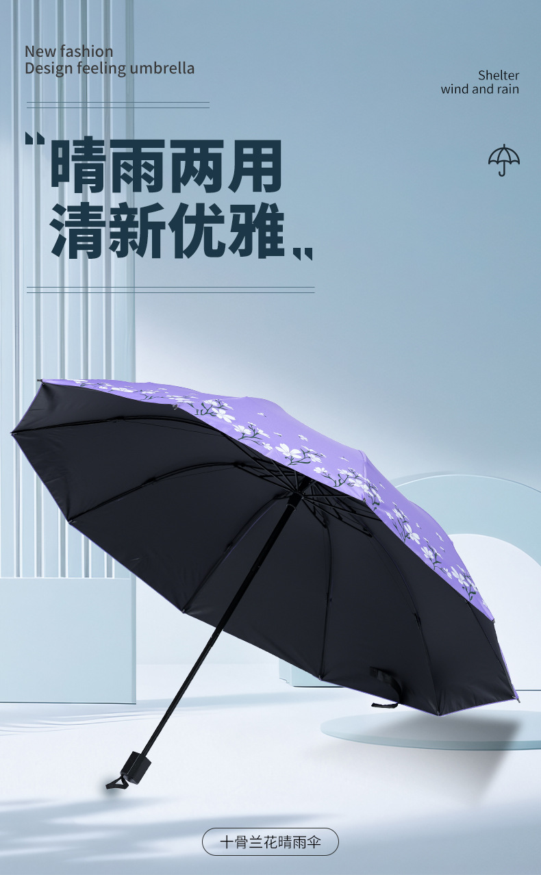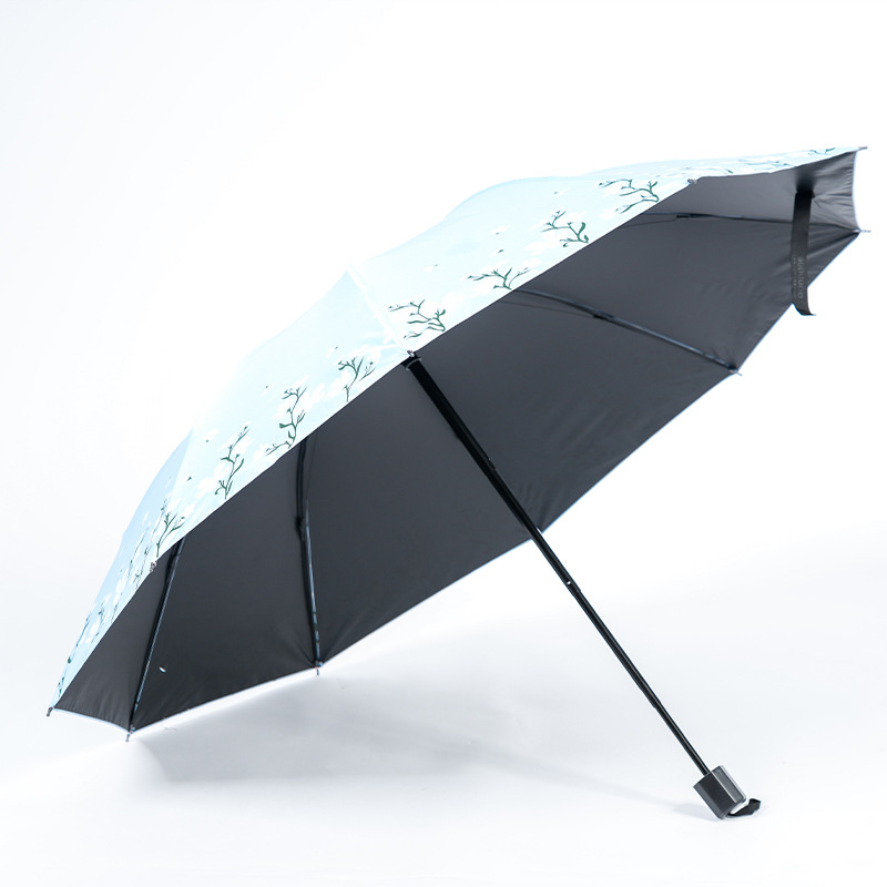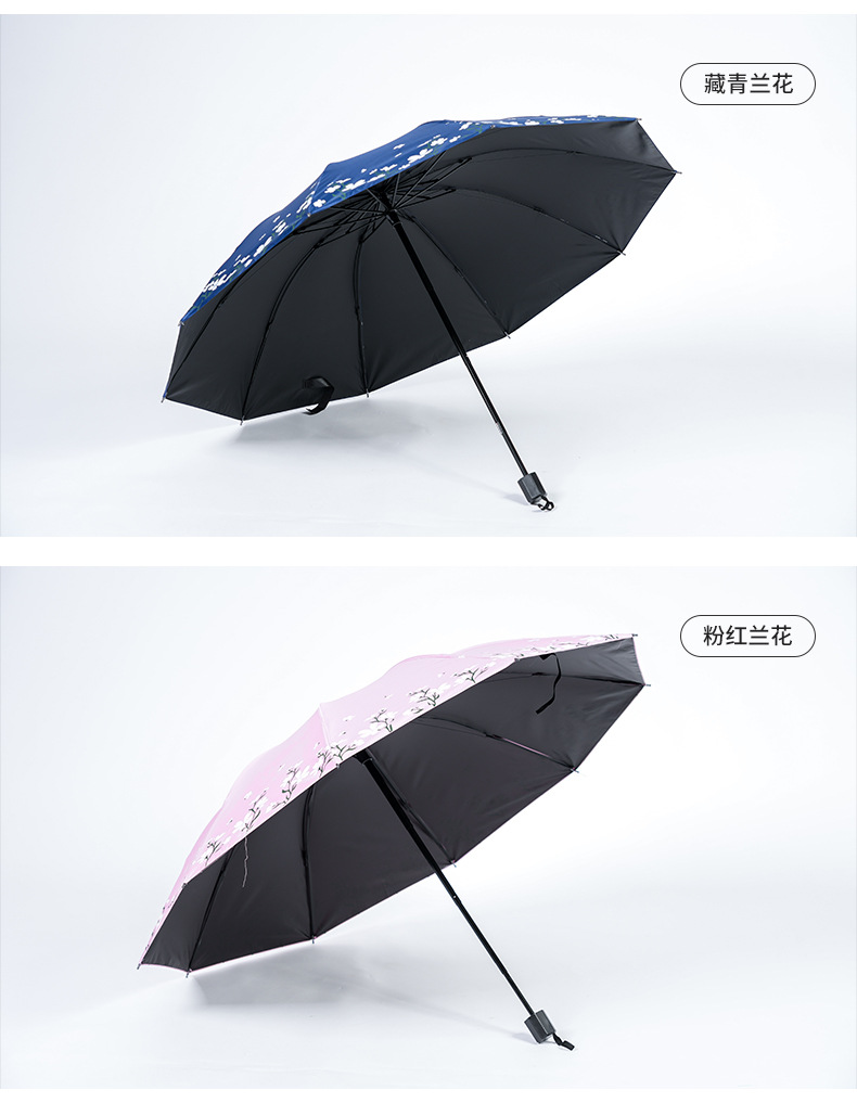 2024 남성과 여성을위한 맑고 비오는 이중 목적 검은 고무 우산 태양 우산 태양 우산 신선한 꽃 햇빛 우산