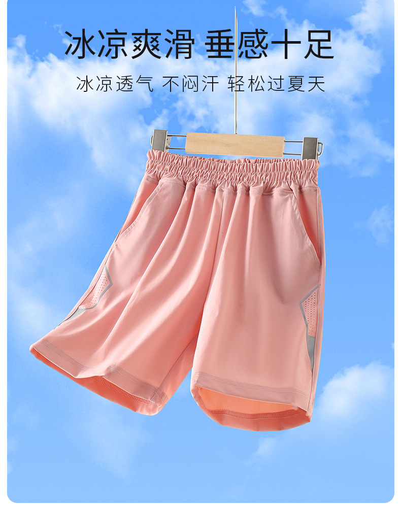 남학생과 여학생 반바지 여름 외부 착용 어린이 중간 길이 바지 빠른 건조 아이스 실크 5 길이 바지 경량 스포츠 핫 바지 여름 착용