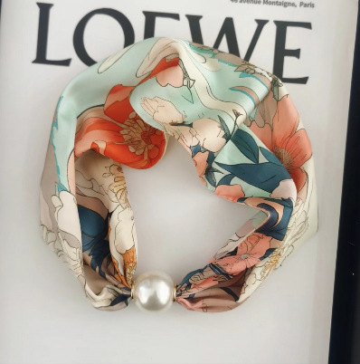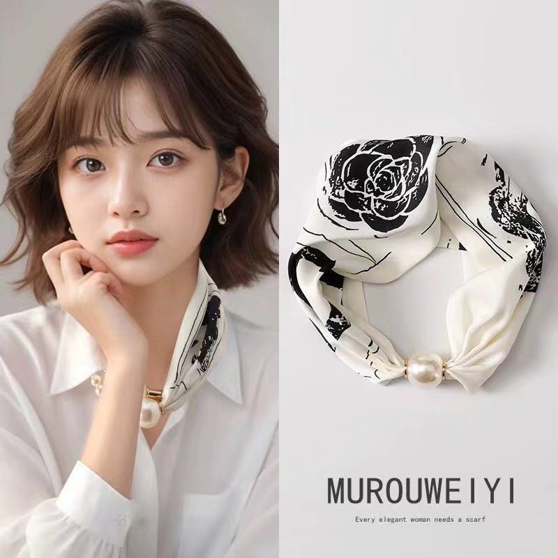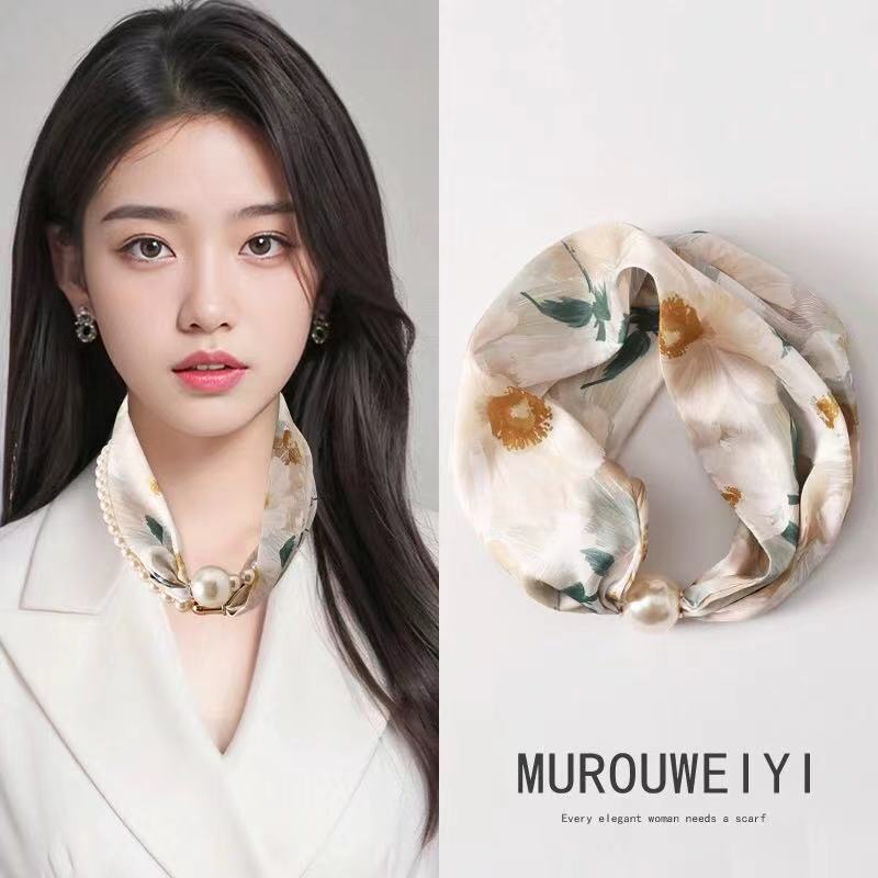 실크 스카프 여성의 봄과 여름 새로운 틈새 하이 엔드 진주 마그네틱 버클 목걸이 유행 입고 인쇄 된 작은 스카프스토어 가기