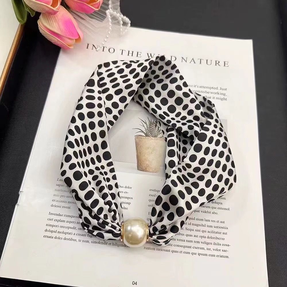 실크 스카프 여성의 봄과 여름 새로운 틈새 하이 엔드 진주 마그네틱 버클 목걸이 유행 입고 인쇄 된 작은 스카프