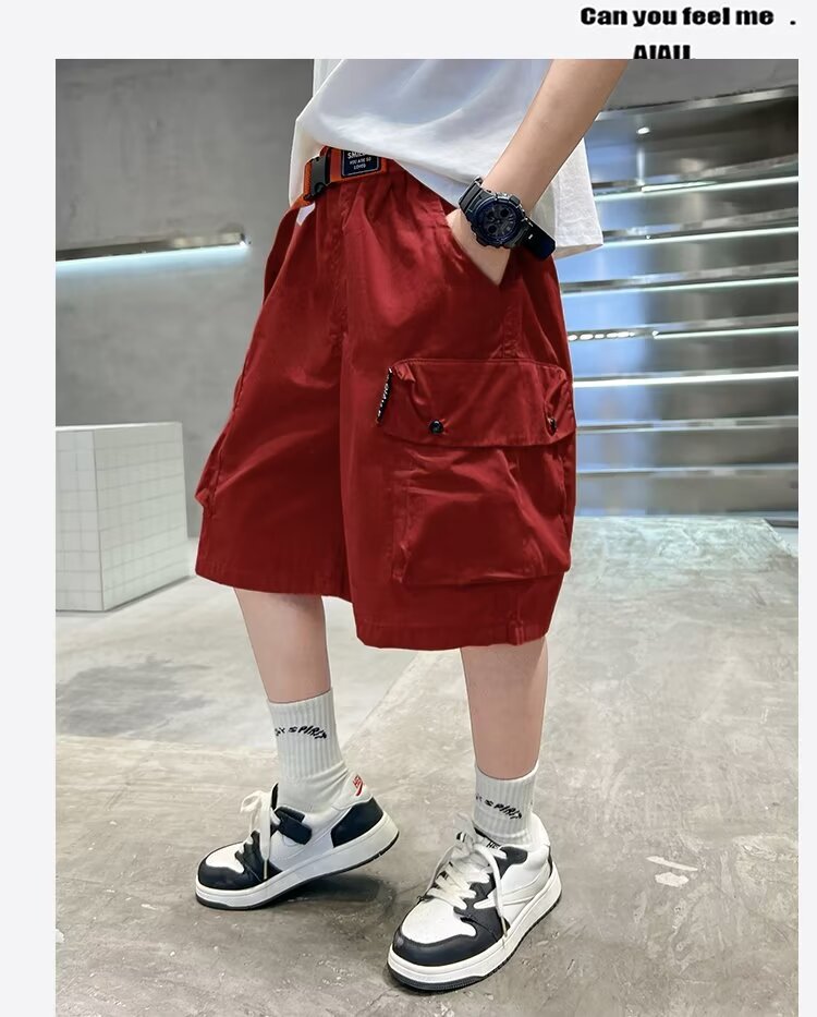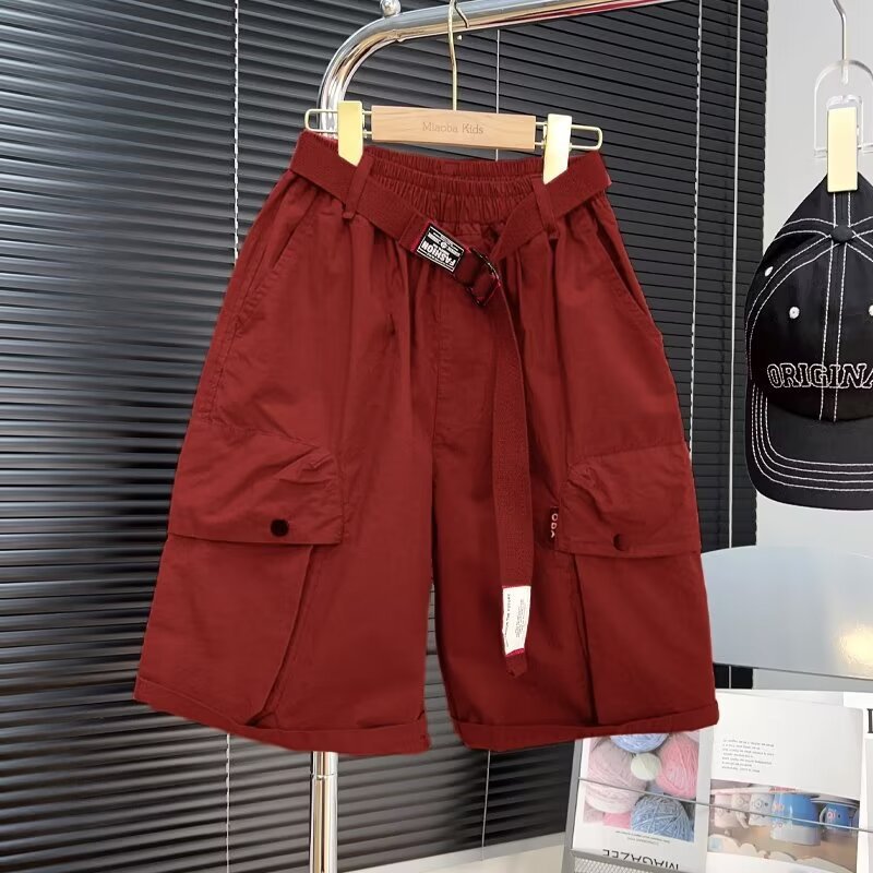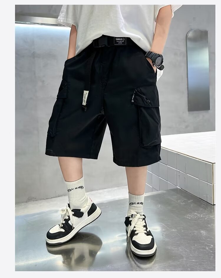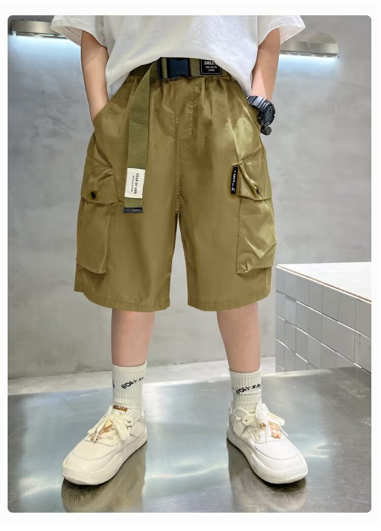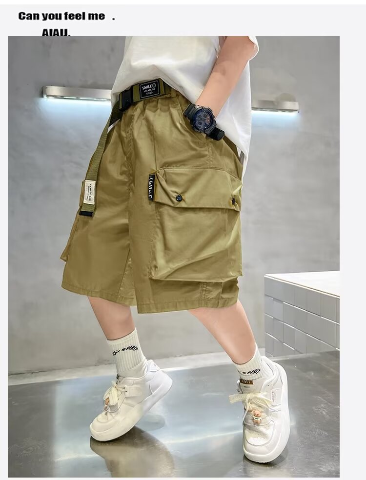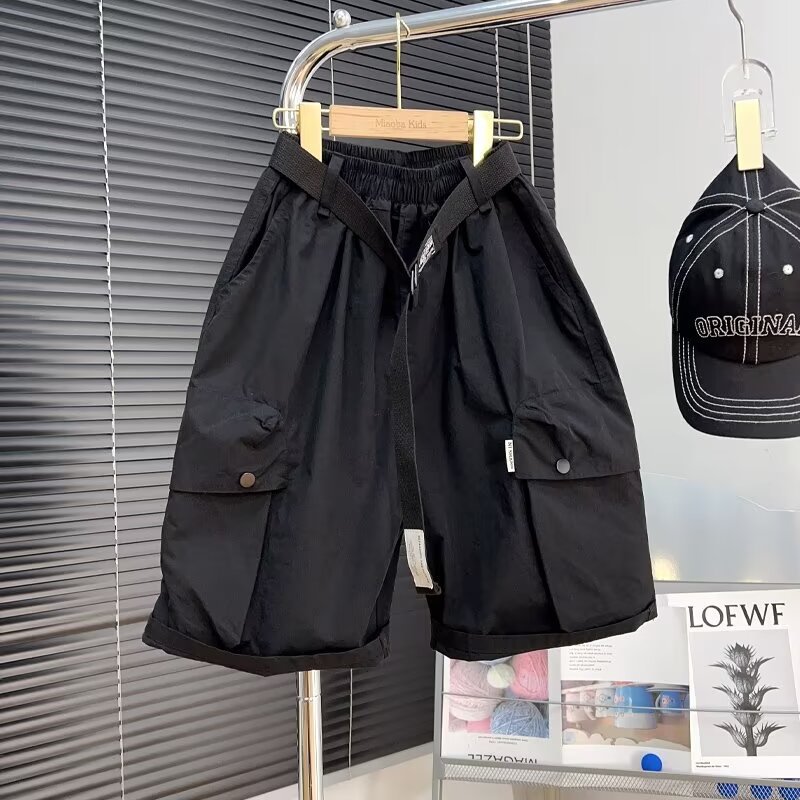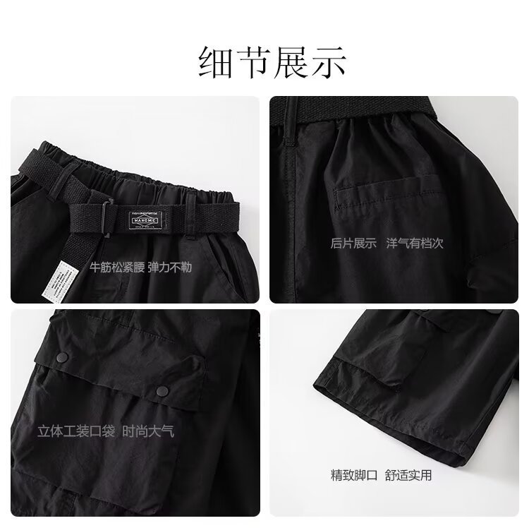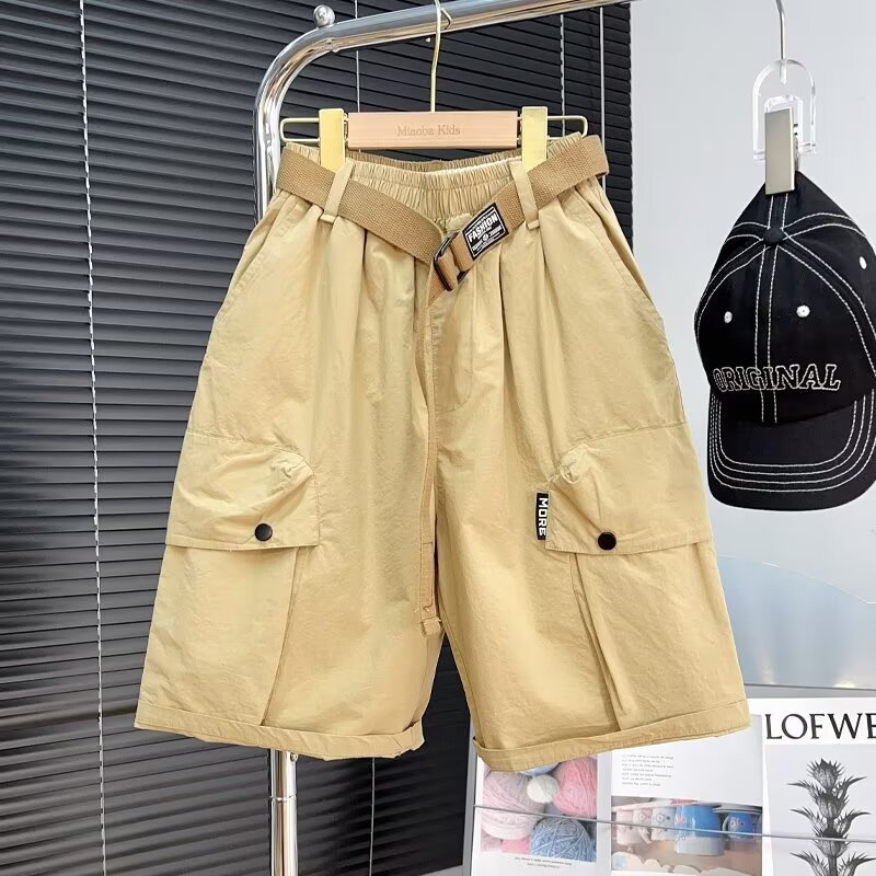 2024 여름 소년 5 점 바지 청소년 얇은 캐주얼 크레인 바지 어린이 캐주얼 반바지 빠른 건조 중형 바지스토어 가기