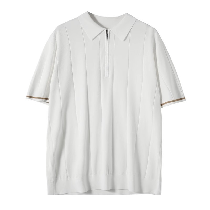 유행 올 매치 여름 티셔츠 남자의 가벼운 성숙한 영국 슬림 핏 스트라이프 니트 반팔 폴로 셔츠 통통한 남자 올 매치 티셔츠스토어 가기