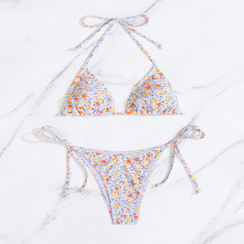 2024 새로운 아마존 유럽과 미국의 꽃 레이스 업 비키니 수영복 여성 3 점 섹시한 비키니 수영복