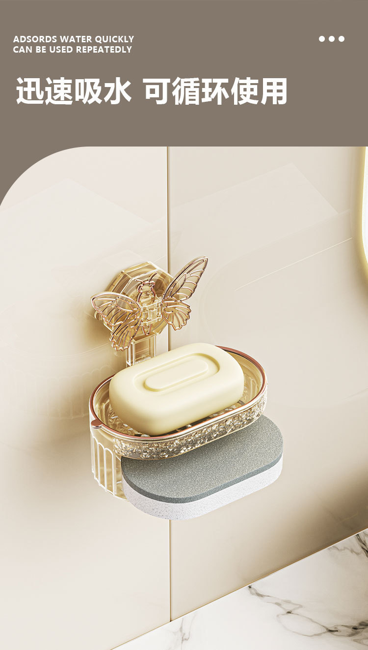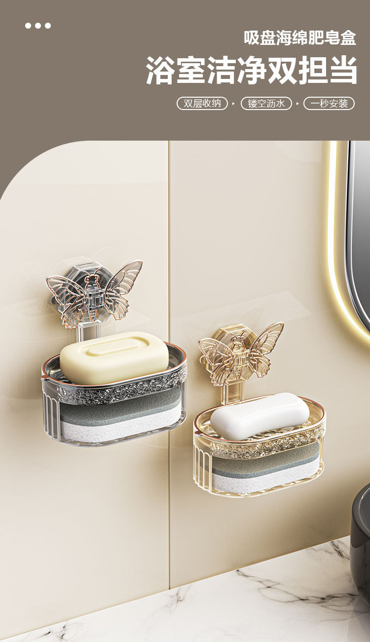 가벼운 고급 나비 흡입 컵 비누 상자 비누 랙 벽걸이 비 천공 배수 날개 비누 상자 욕실 랙