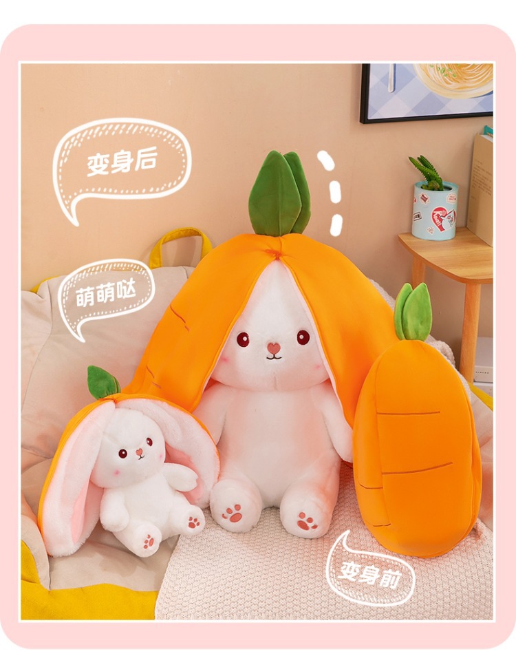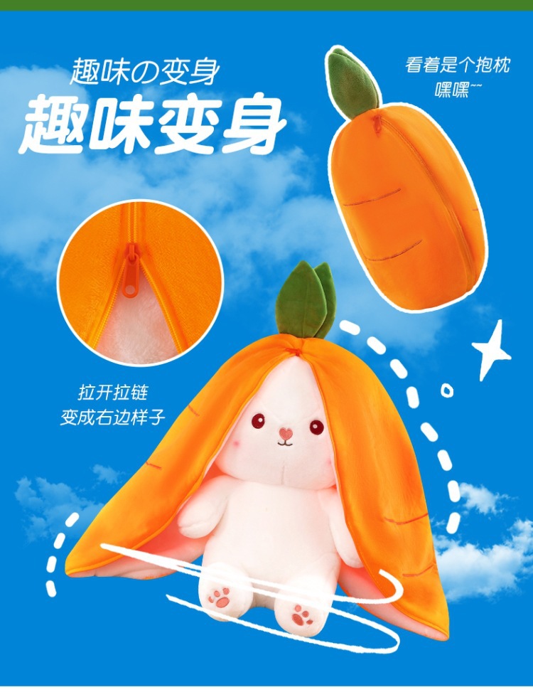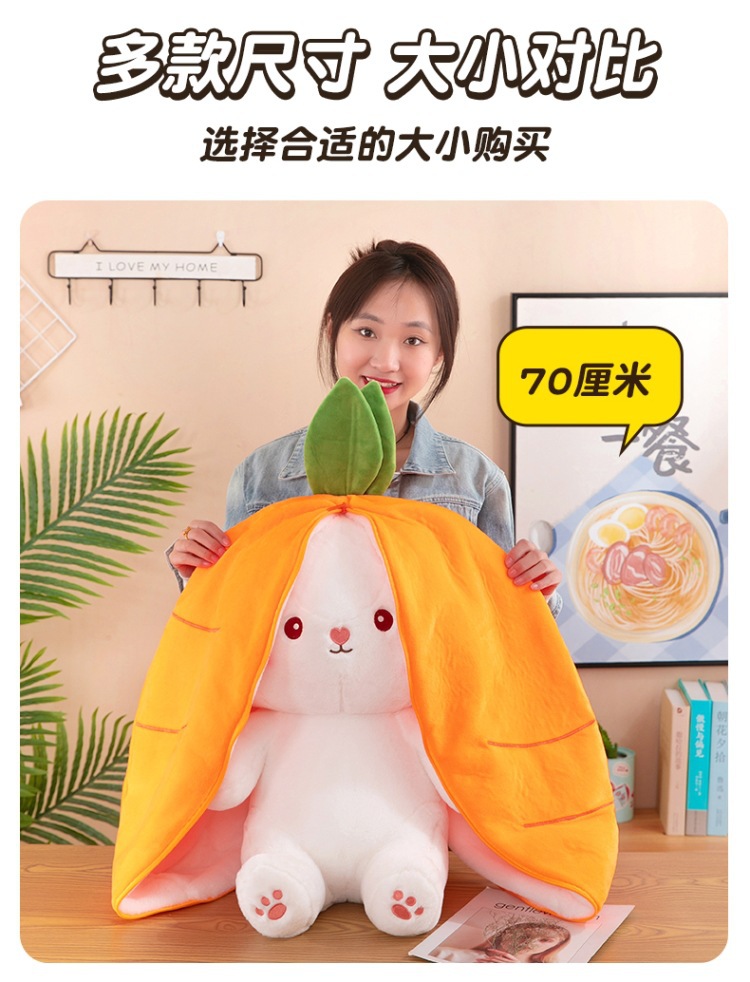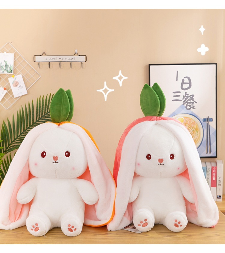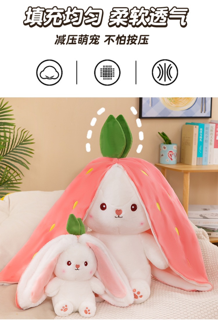 网红可爱变身兔毛绒玩具草莓胡萝卜兔子抱枕玩偶儿童节送女友礼物