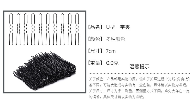 유럽풍 심플 블랙 헤어핀, 잔머리 고정용 작은 집게핀, 헤어 액세서리, 스틸 클립, 장식품 6cm스토어 가기