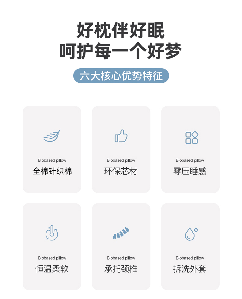 바이오 기반 제로 압력 베개 코어 콩 기반 슈퍼 벨벳 소프트 부모 자식 베개 메모리면 성인 목 베개 수면에 도움