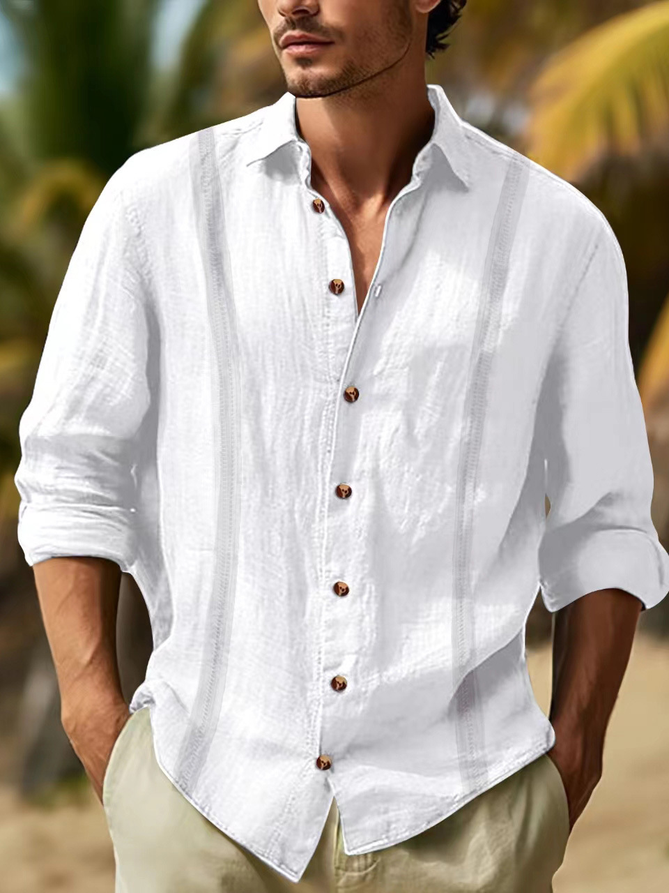 국경 2024 봄과 가을 새로운 단색 면과 리넨 혼합 콜라주 옷깃 긴 소매 매일 캐주얼 남성용 셔츠