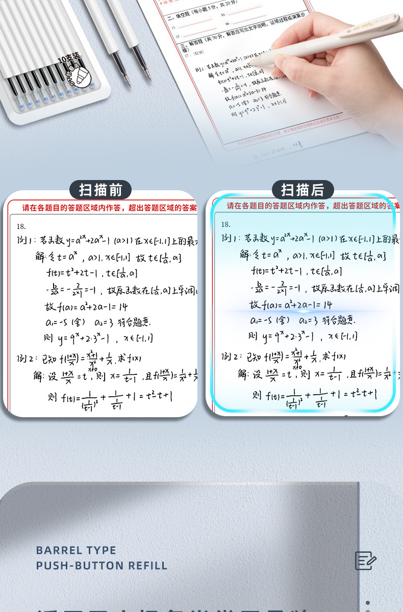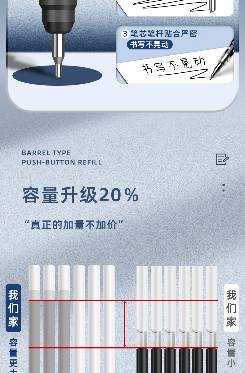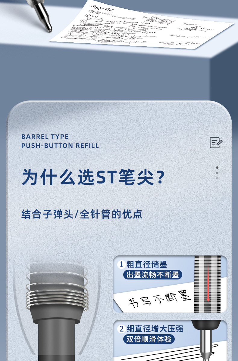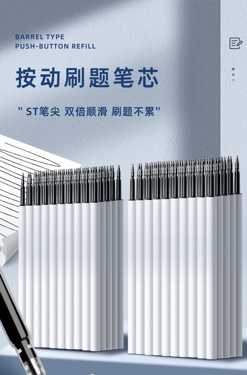 ST 헤드 교체 코어 블랙 푸시 펜, 대용량 푸시 투 프레스 조롱박 헤드 브러시 10 봉지 리필