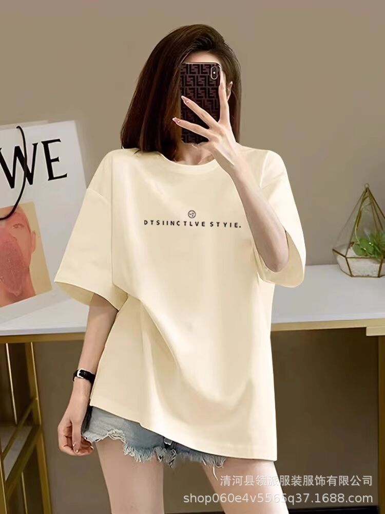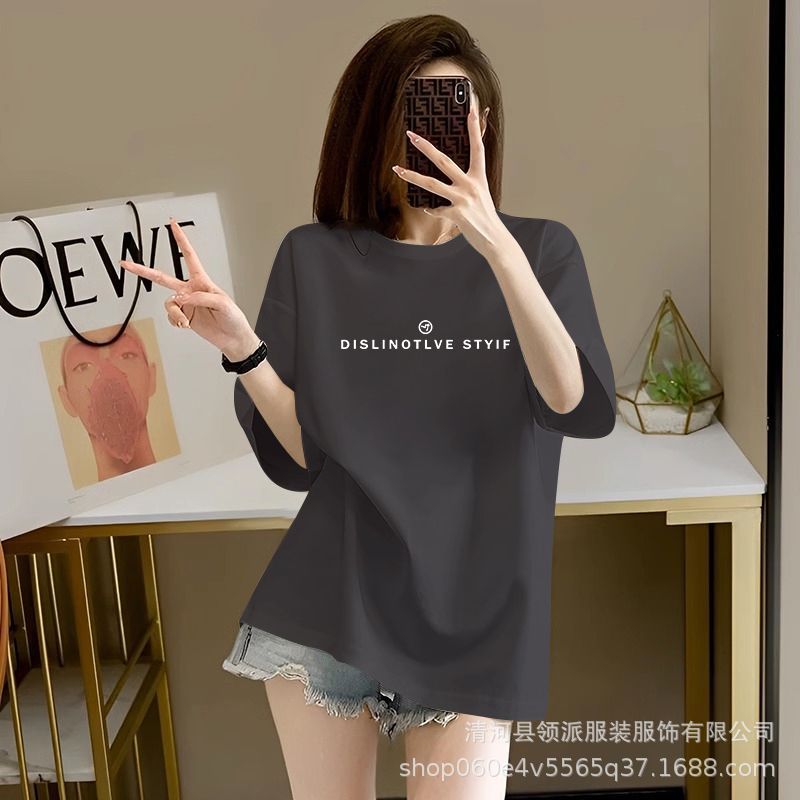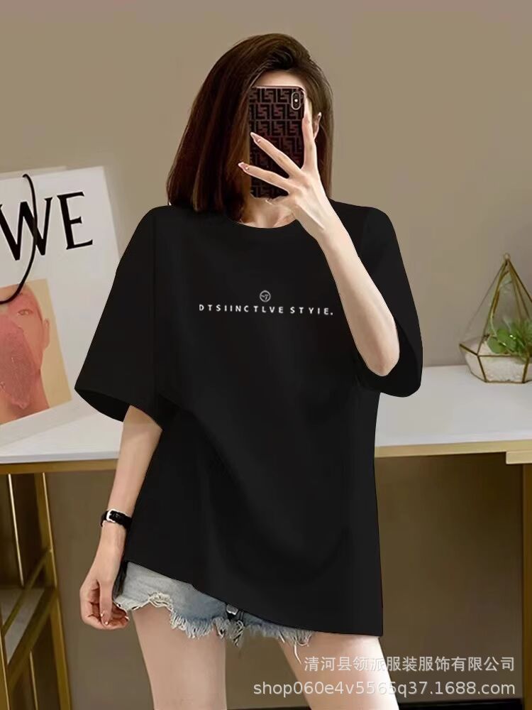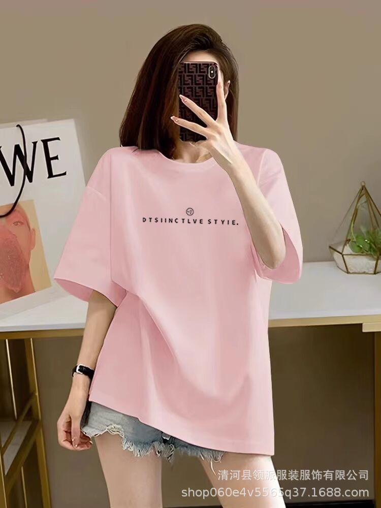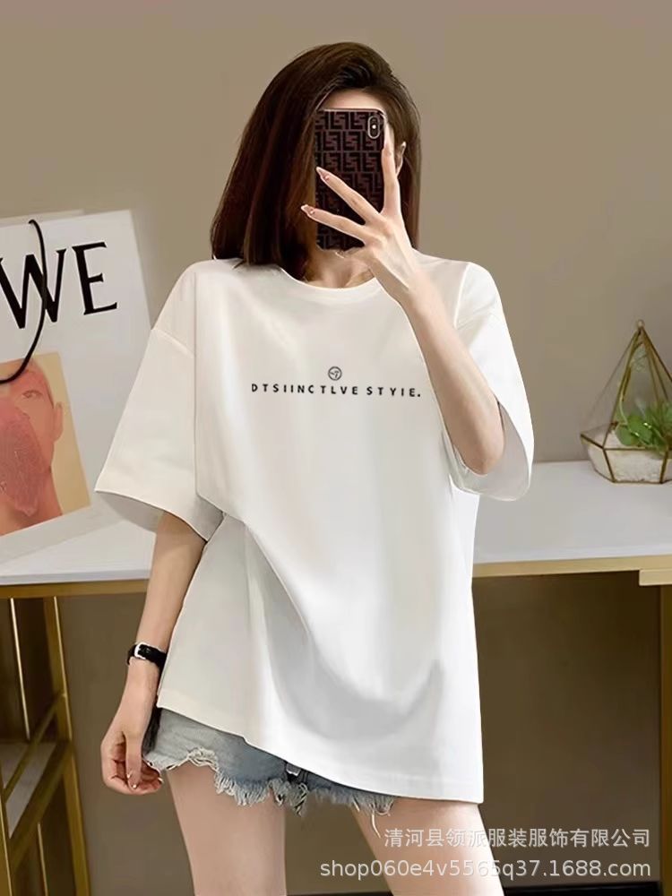 코튼 플러스 사이즈 티셔츠 남녀 커플 2024 새로운 라운드 넥 루즈 슬리밍 웨스턴 스타일 올 매치 하프 슬리브 트렌디 탑