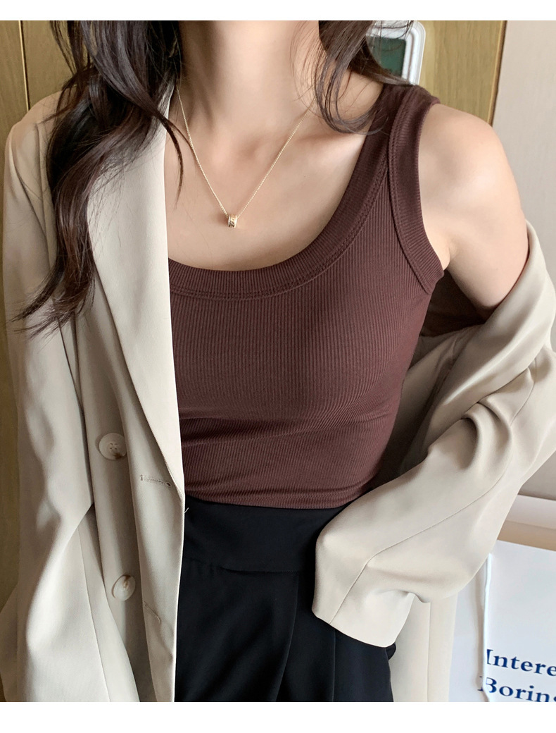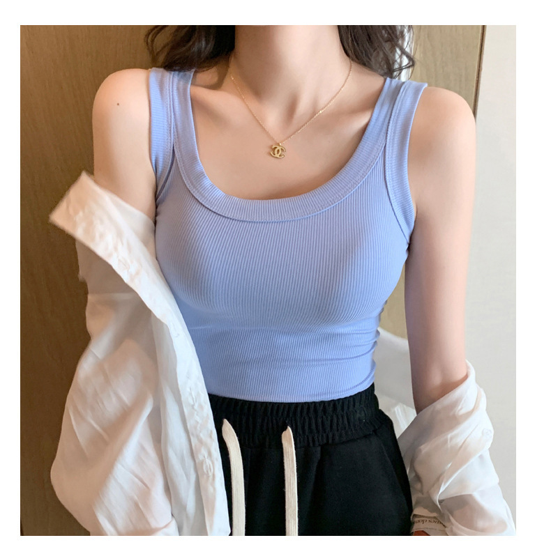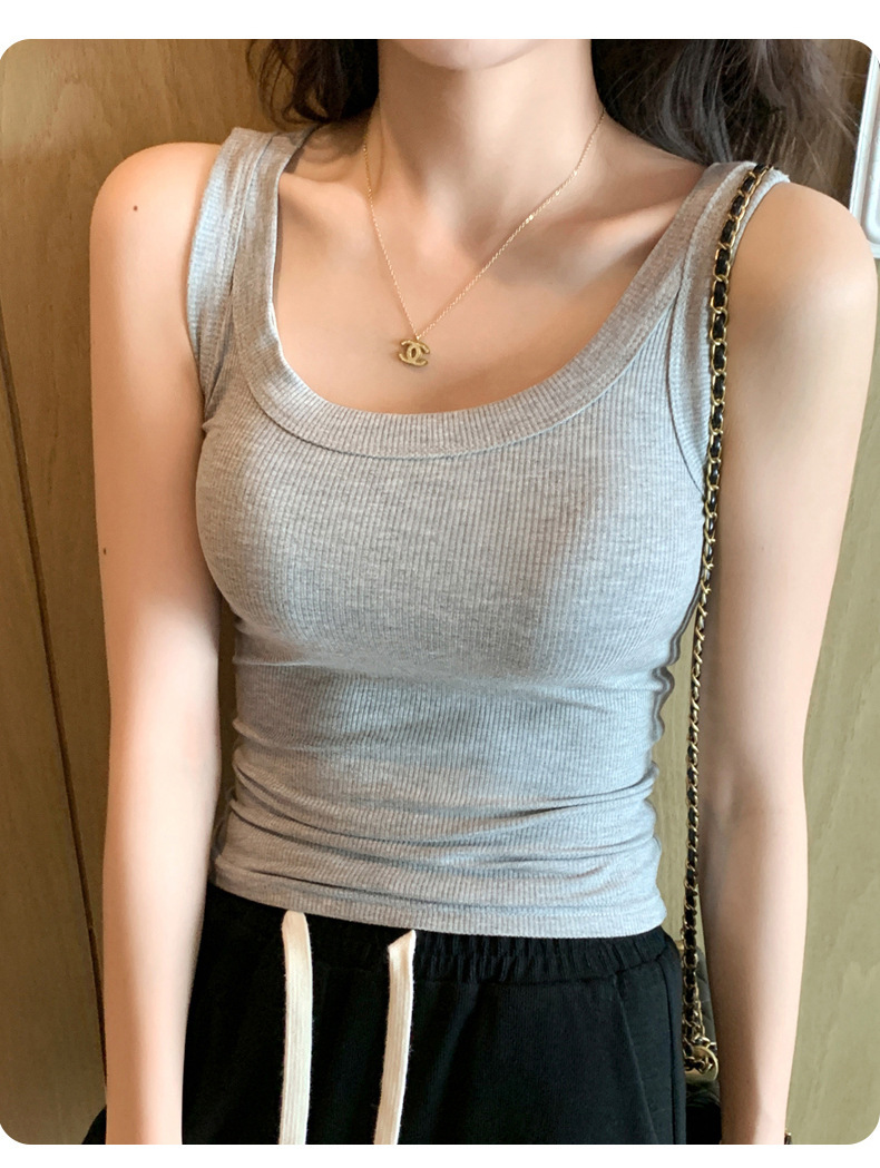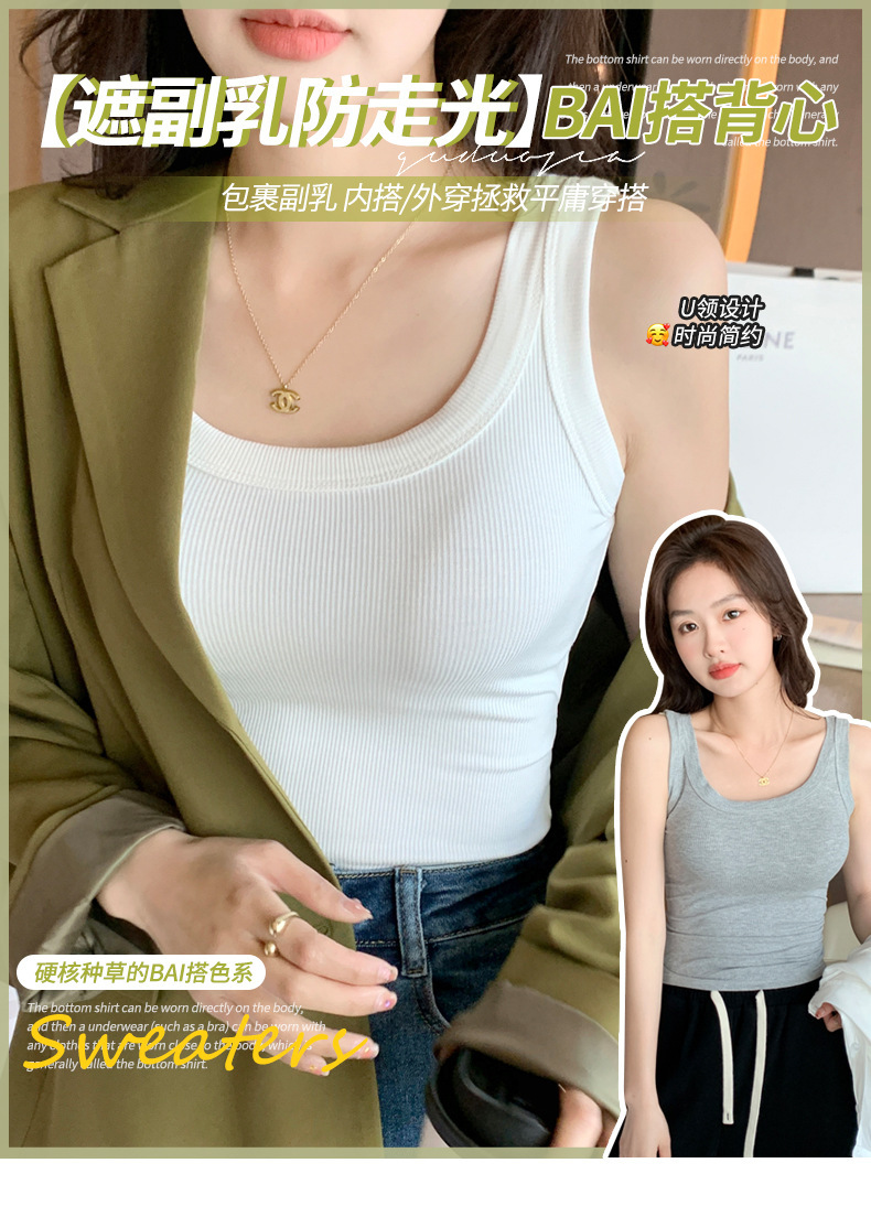 H523 여성용 민소매 탑, 이너웨어 또는 아우터웨어로 착용 가능, 여름용 골지 민소매 탑, 슬림핏, 가슴살 커버 탑스토어 가기