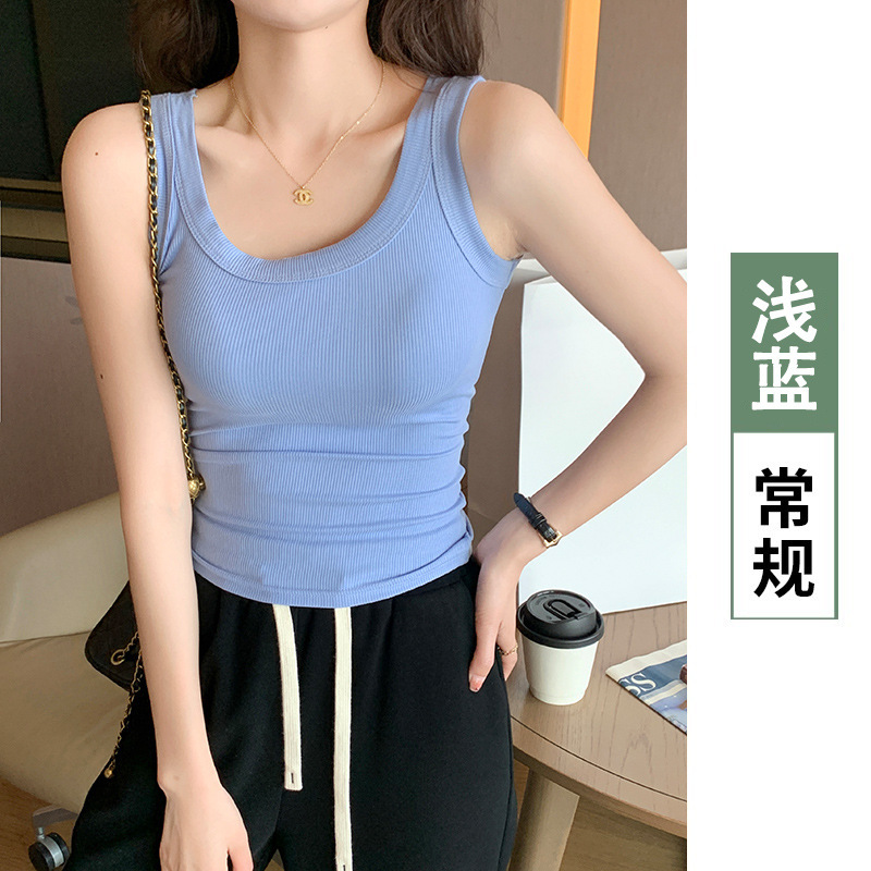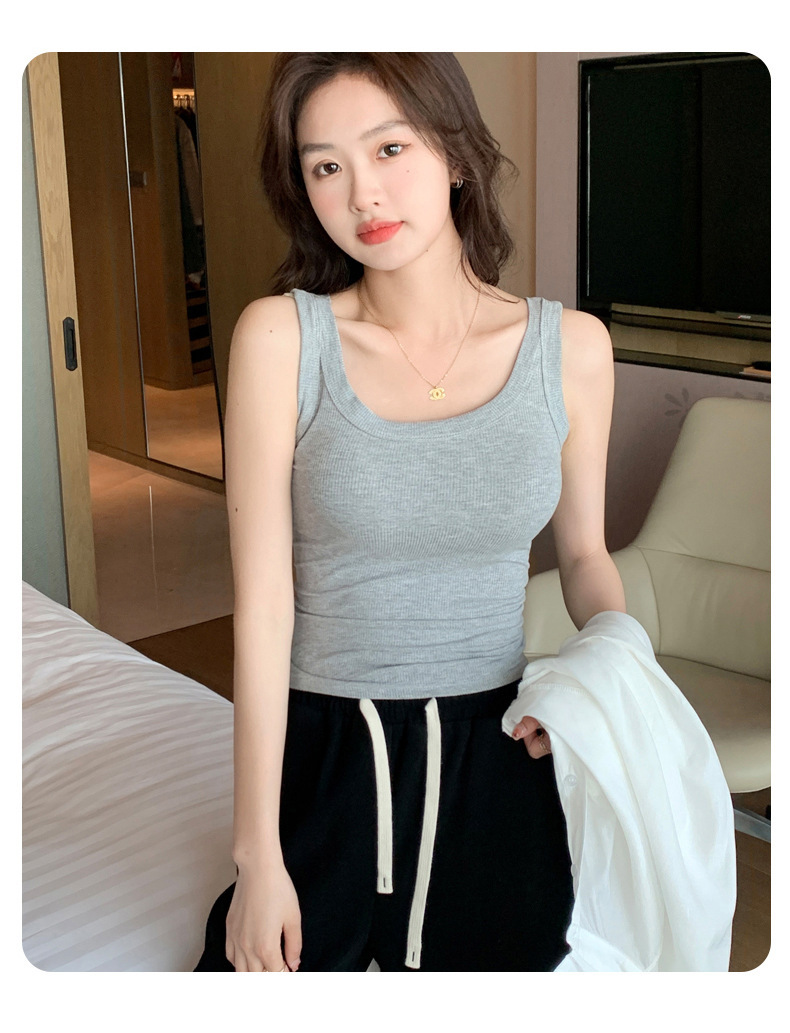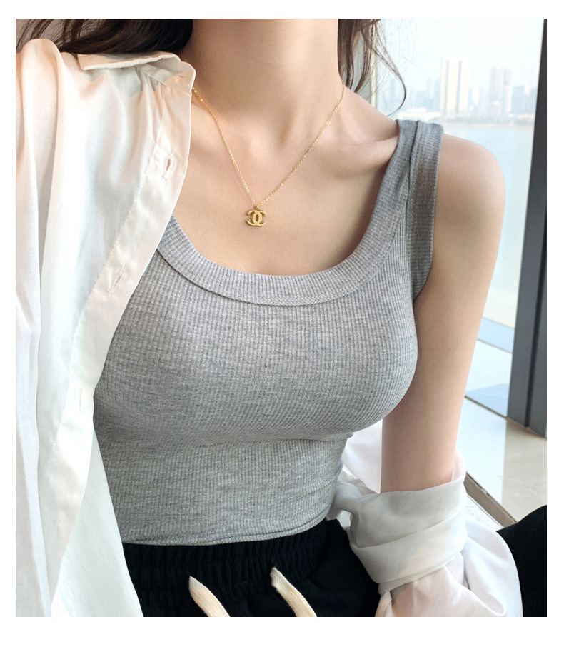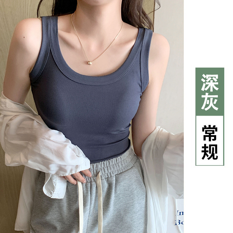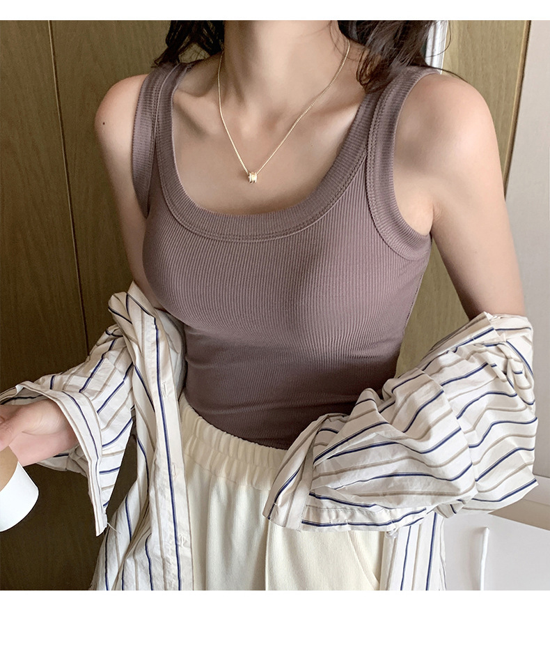 H523 여성용 민소매 탑, 이너웨어 또는 아우터웨어로 착용 가능, 여름용 골지 민소매 탑, 슬림핏, 가슴살 커버 탑스토어 가기