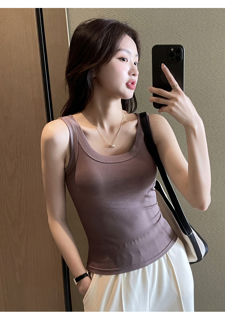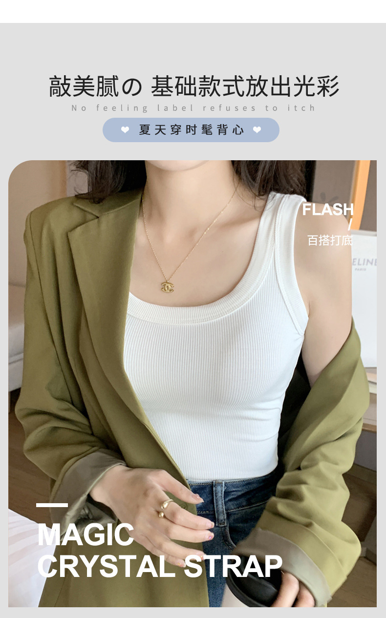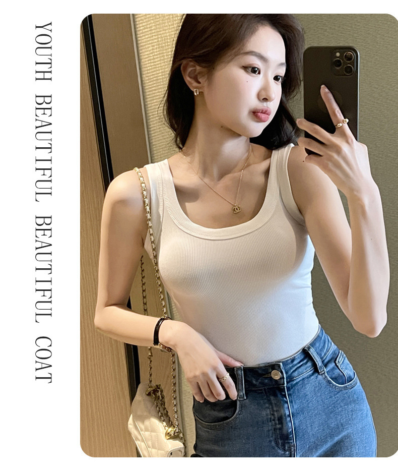H523 여성용 민소매 탑, 이너웨어 또는 아우터웨어로 착용 가능, 여름용 골지 민소매 탑, 슬림핏, 가슴살 커버 탑