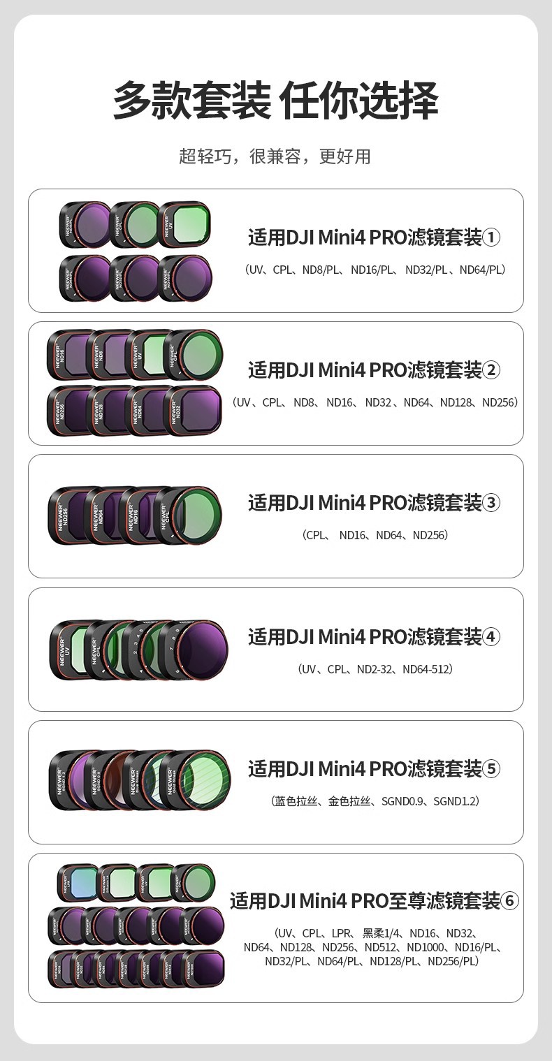 DJI MINI4 Pro UAV 필터 패키지 UV/CPL/ND 렌즈를위한 NEEWER/Newer스토어 가기