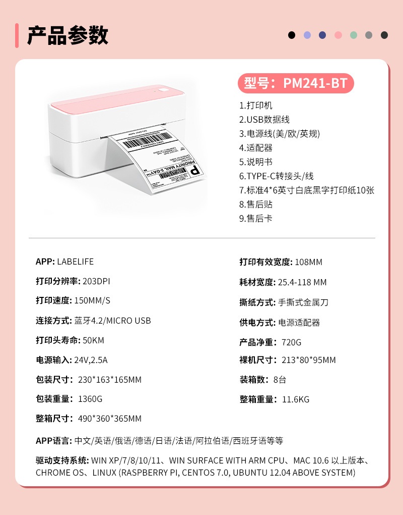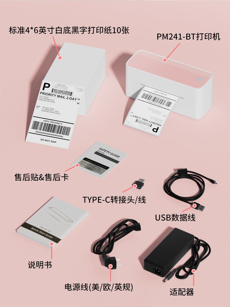 포모모PM241 택배 프린터 열전사 라벨 프린터 해외 배송 무선 블루투스 휴대폰 연결 가능