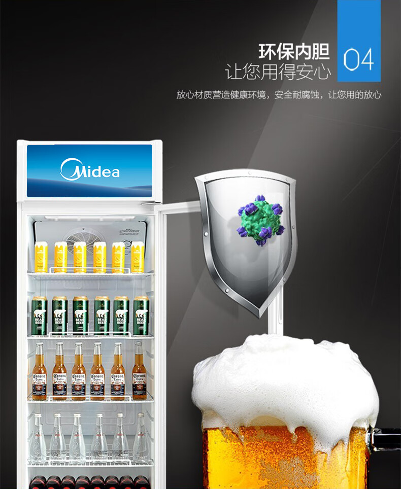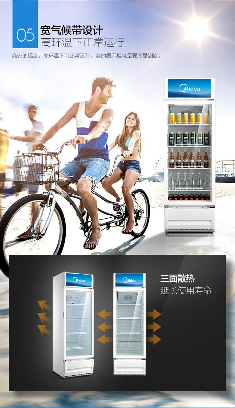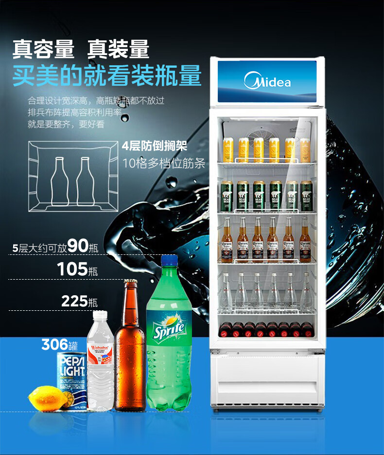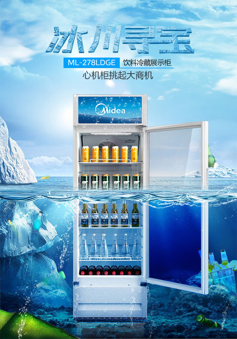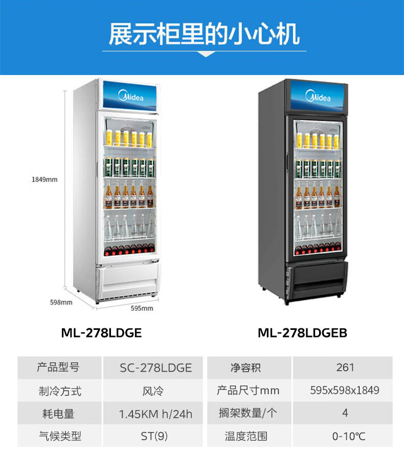 Midea 상업용 278 리터 음료 과일 신선한 보관 캐비닛 냉장 신선한 보관 캐비닛 공기 커튼 캐비닛 ML-278LDGEB 블랙스토어 가기