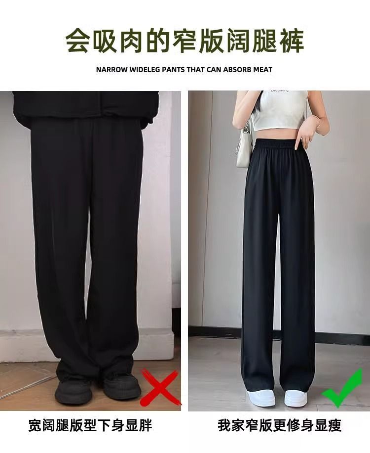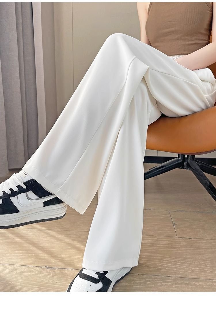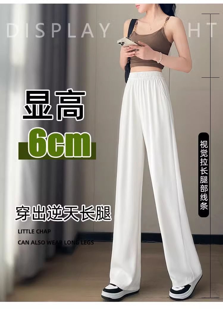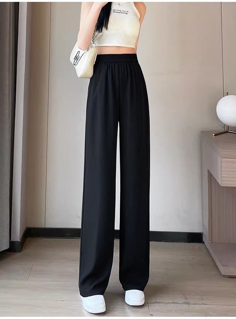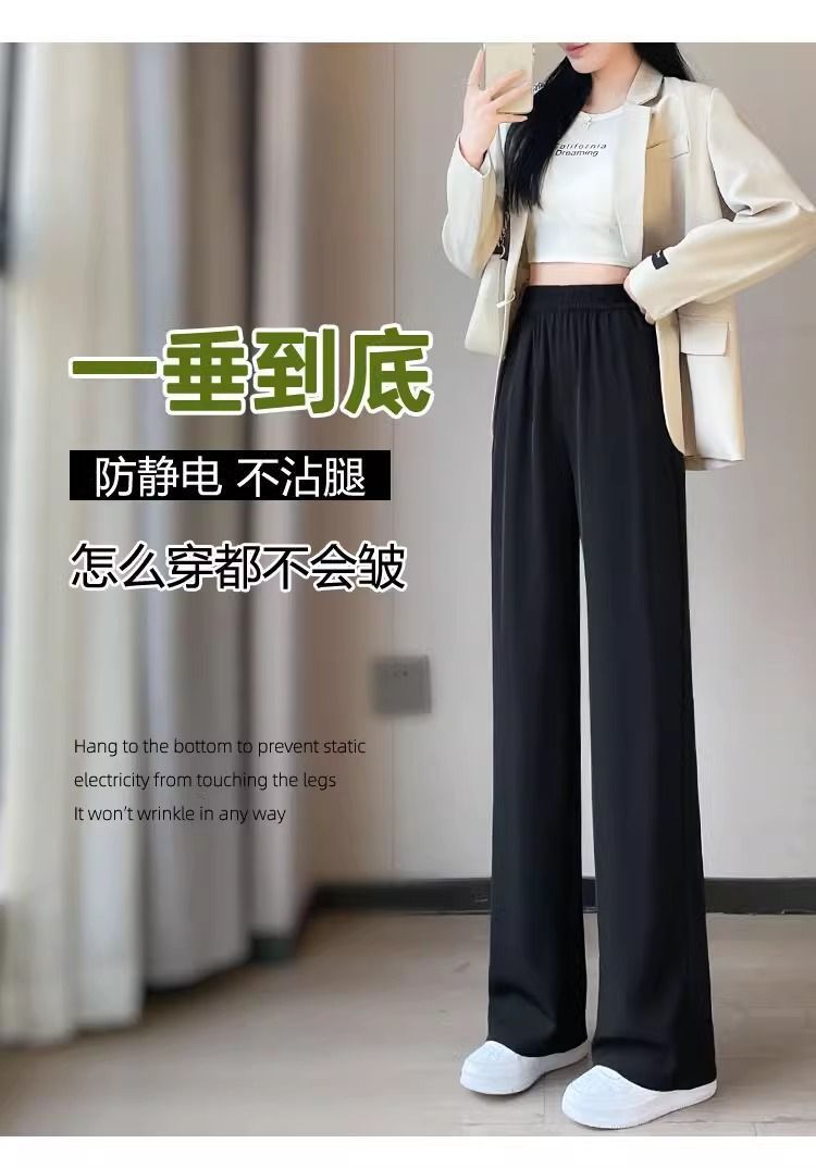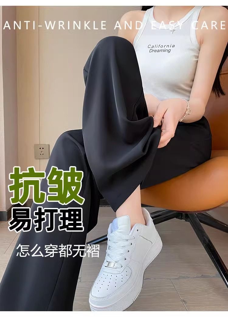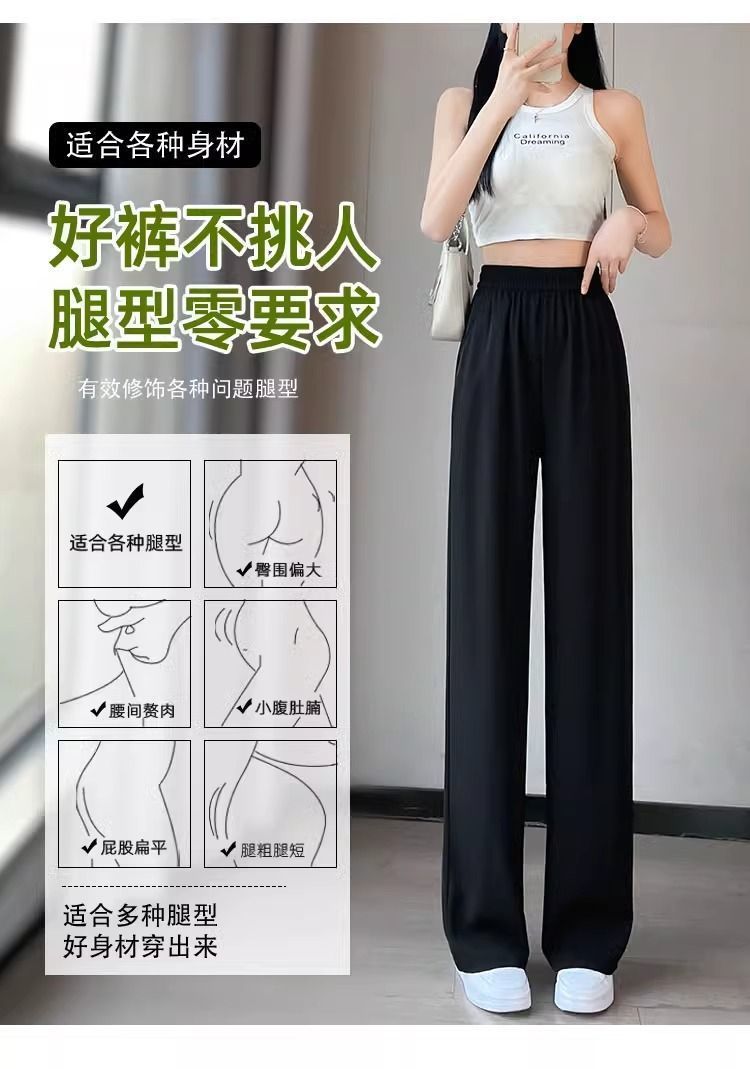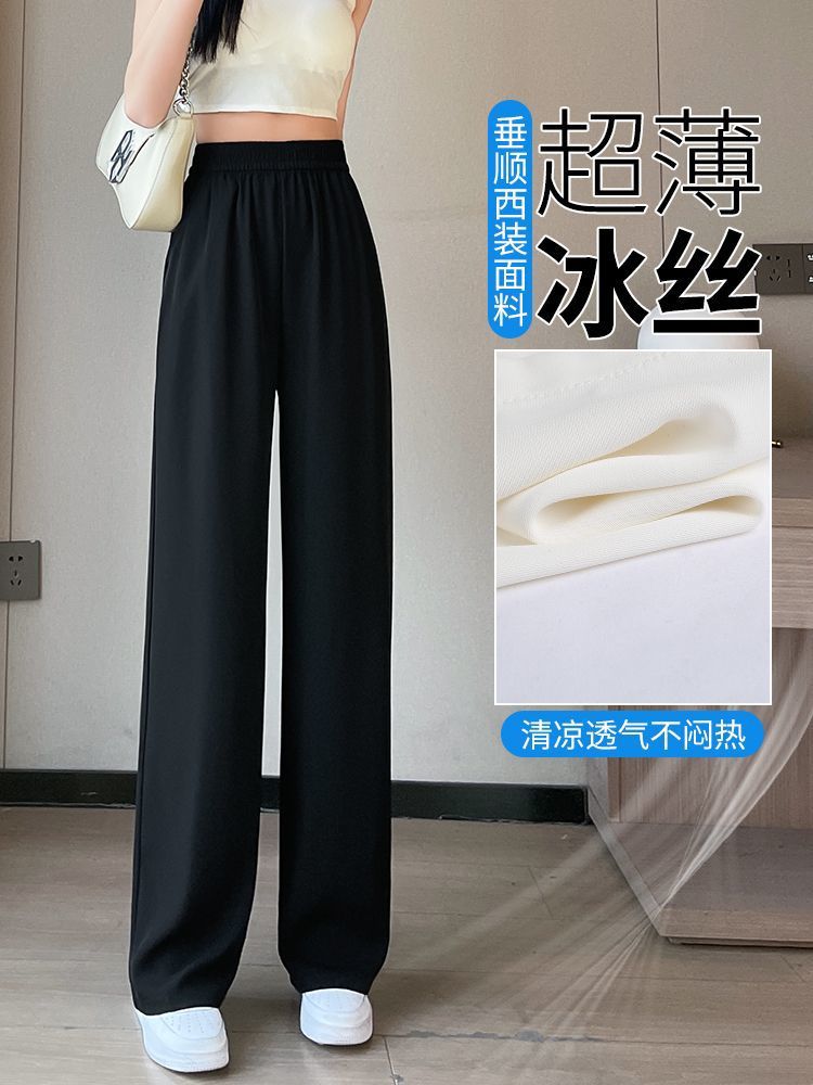 세트 넓은 다리 바지 여성의 여름 얇은 2024 새로운 슬리밍 높은 허리 투약 얼음 실크 좁은 직선 캐주얼 바지스토어 가기
