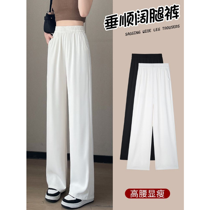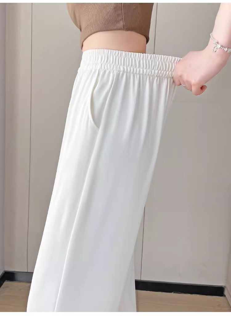 세트 넓은 다리 바지 여성의 여름 얇은 2024 새로운 슬리밍 높은 허리 투약 얼음 실크 좁은 직선 캐주얼 바지